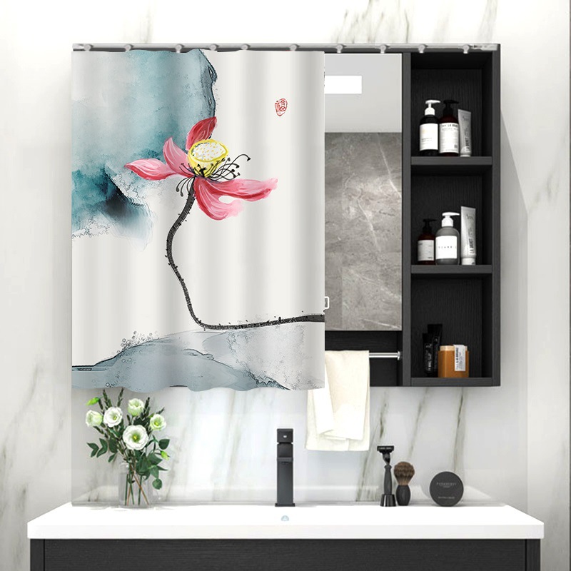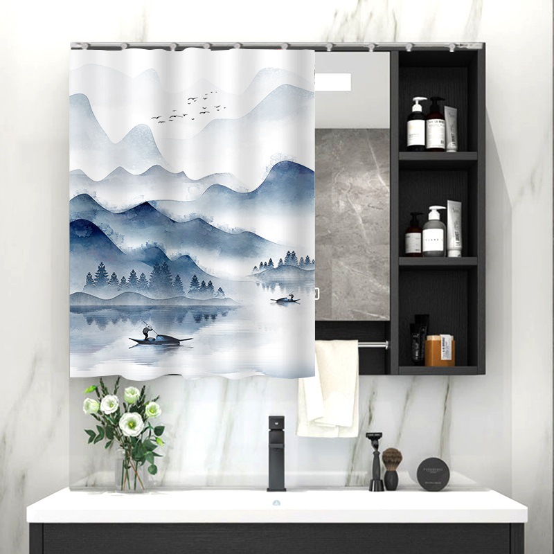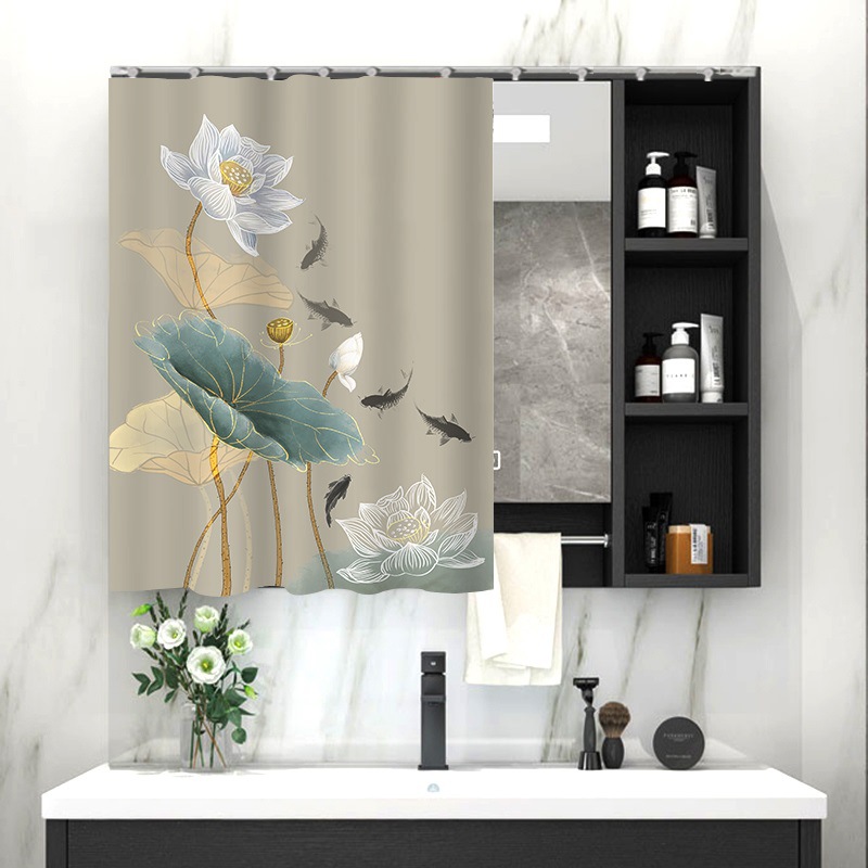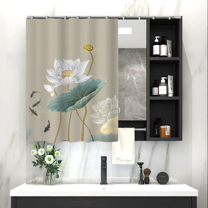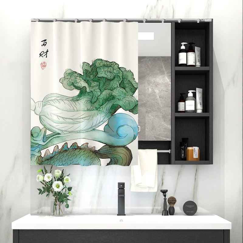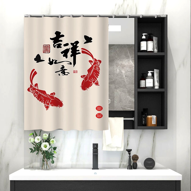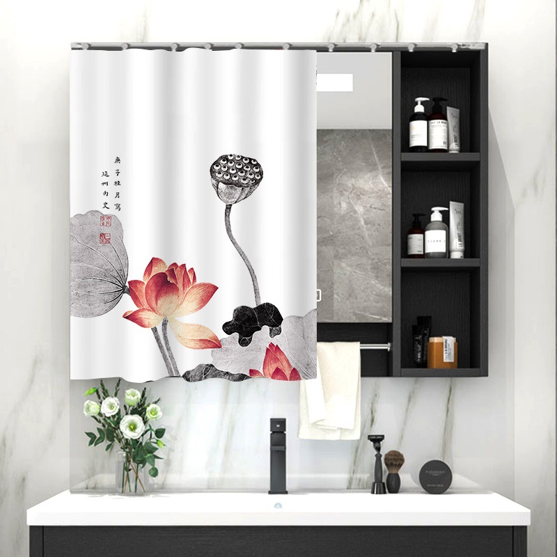 중국 스타일 욕실 캐비닛 드레싱 테이블 거울 커튼 이동식 벨크로 거울 먼지 커버 화장실 거울 커튼스토어 가기