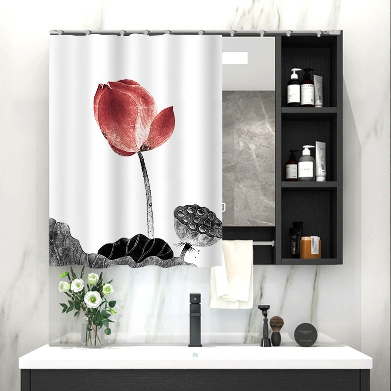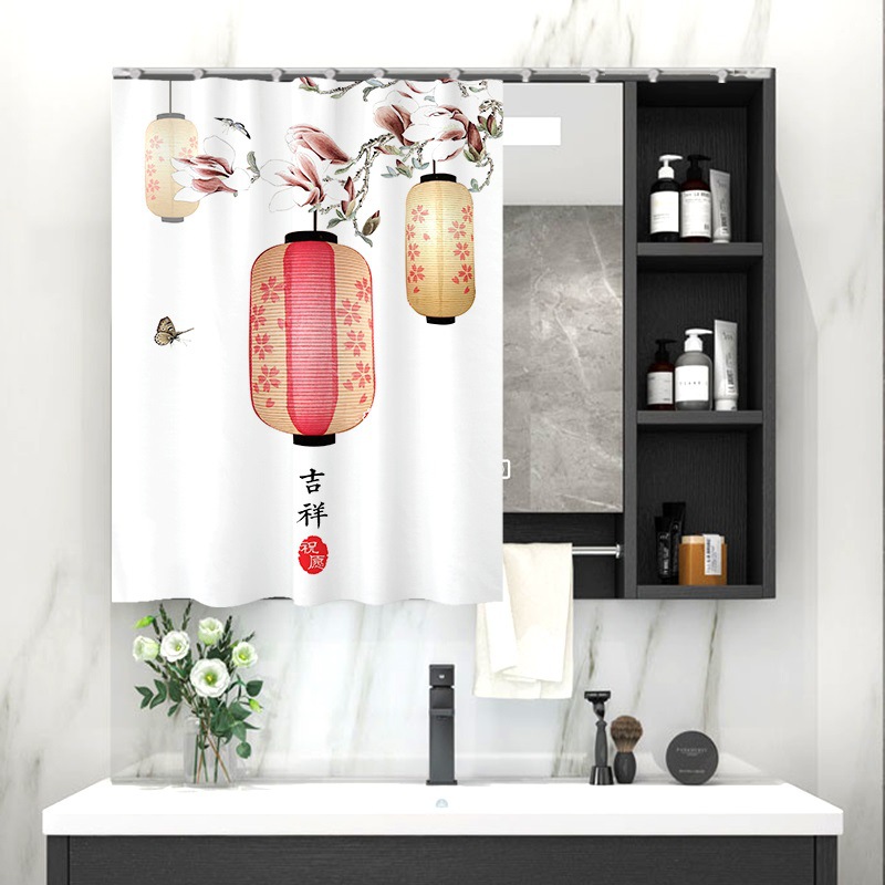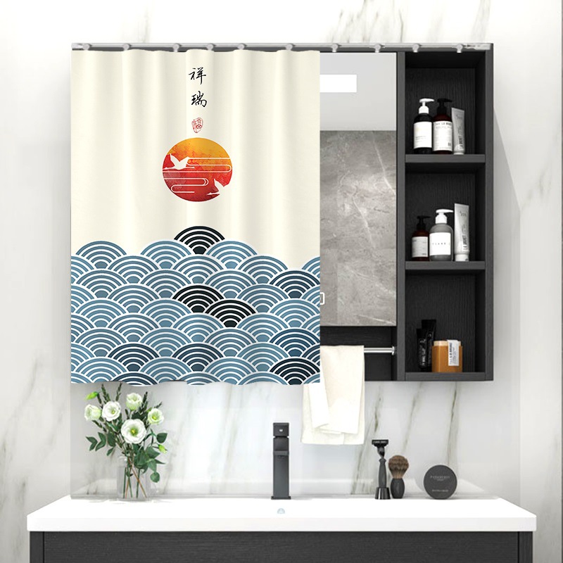 중국 스타일 욕실 캐비닛 드레싱 테이블 거울 커튼 이동식 벨크로 거울 먼지 커버 화장실 거울 커튼
