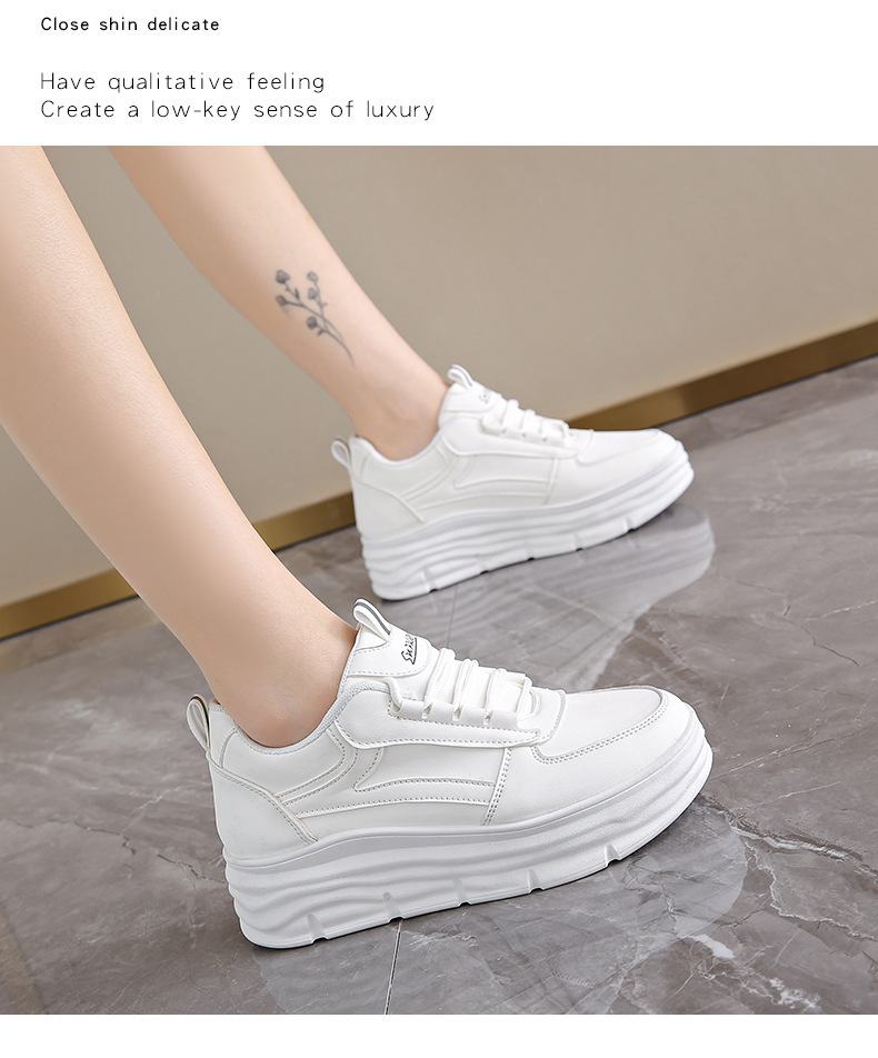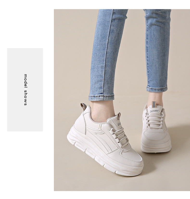 W3612 새로운 가죽 여성 신발 2024 가을 흰색 신발 두꺼운 단독 높이 증가 패션 캐주얼 신발 올 매치 여성 신발