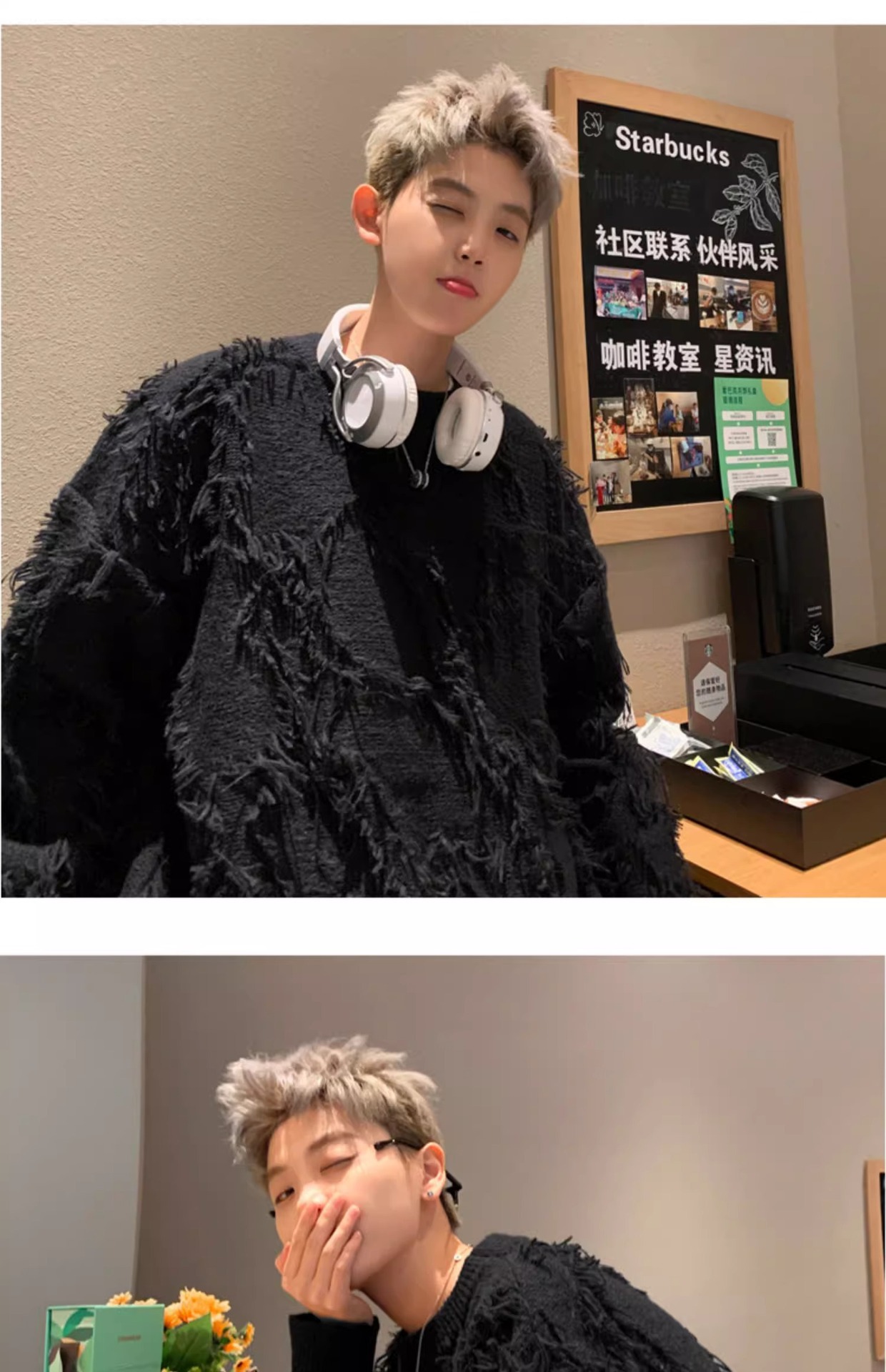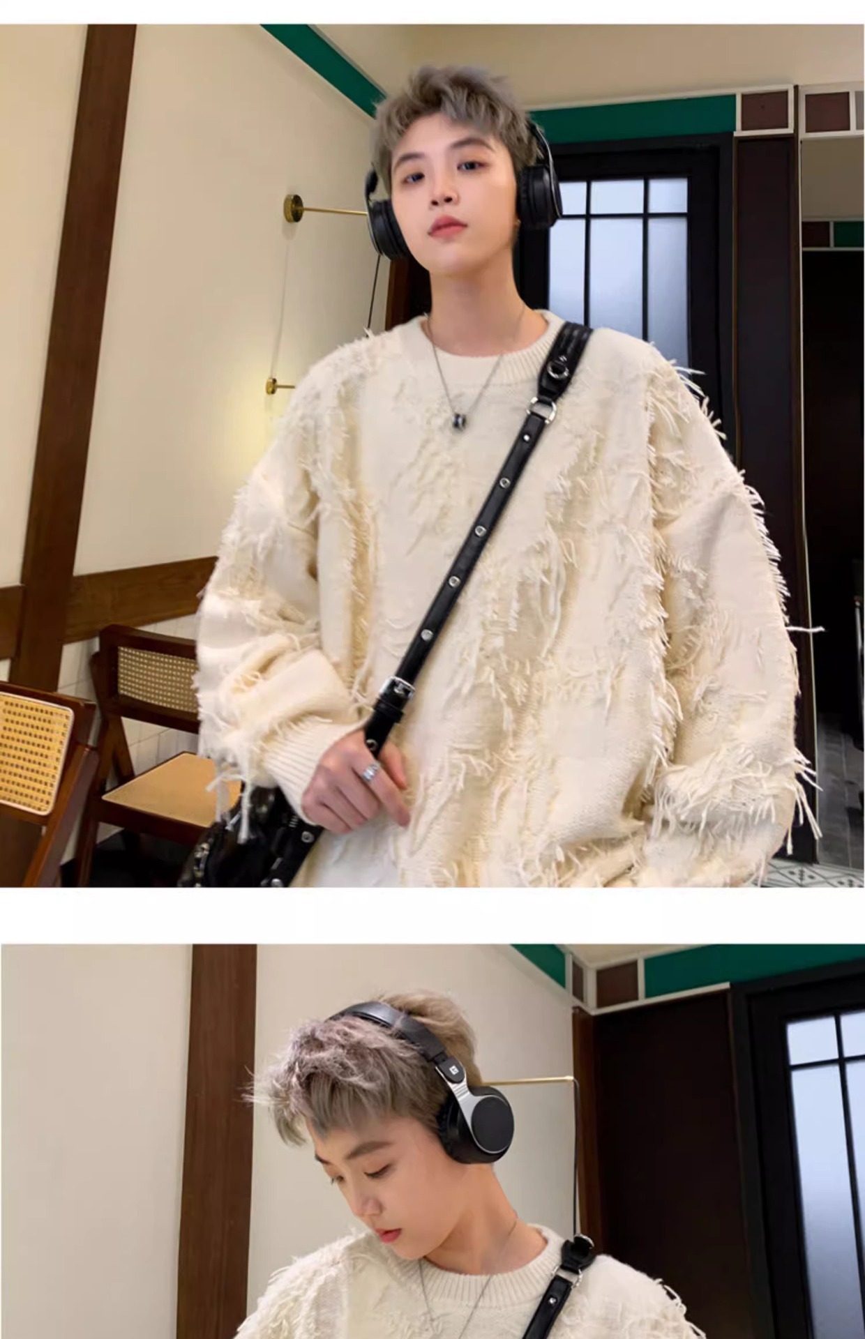장애 술 스웨터 남자 라운드 넥 아메리칸 스타일 게으른 스타일 블랙 디자인 커플 코트 라운드 넥 스웨터스토어 가기