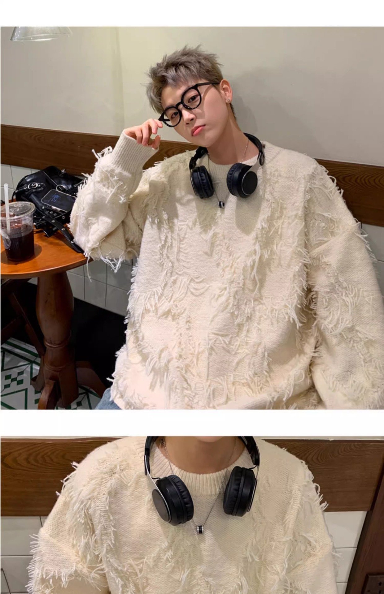 장애 술 스웨터 남자 라운드 넥 아메리칸 스타일 게으른 스타일 블랙 디자인 커플 코트 라운드 넥 스웨터