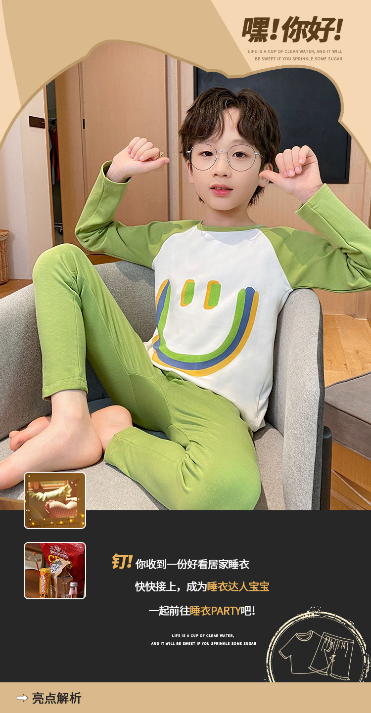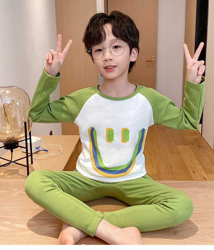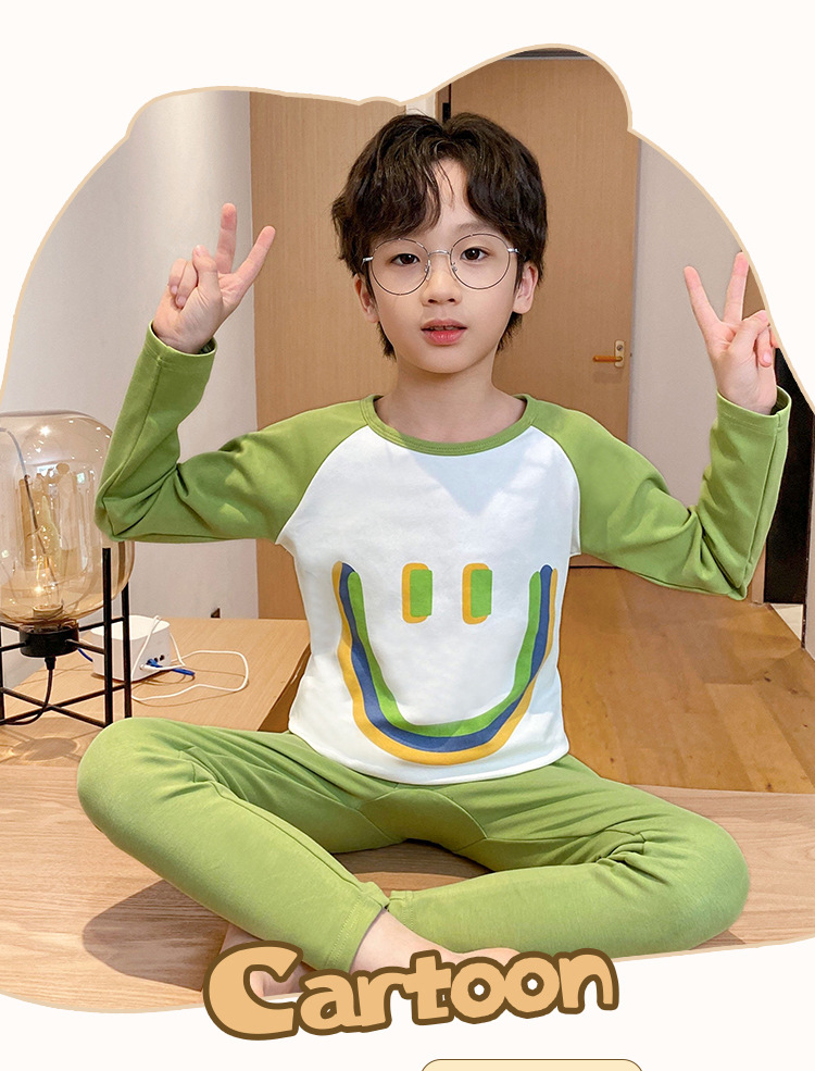 어린이 속옷 세트 소년 가을 옷과 바지 잠옷 홈 옷 순면 만화 봄과 가을 풀오버 중 큰 소년