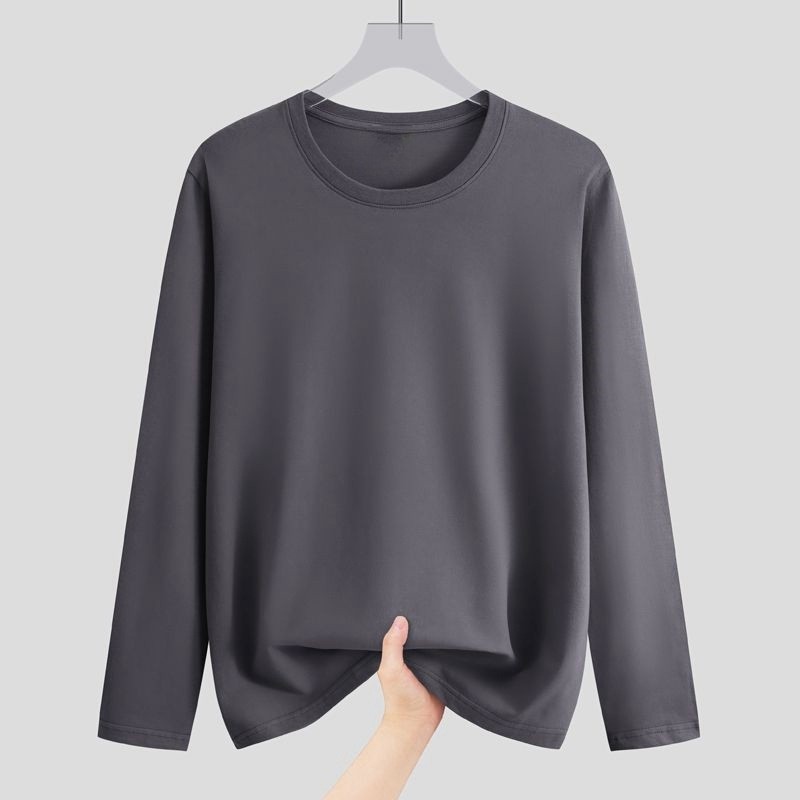 긴 소매 티셔츠 남자 봄과 가을 올 매치 한국 스타일 패션 캐주얼 라운드 넥 솔리드 컬러 탑 얇은 슬림베이스 셔츠스토어 가기