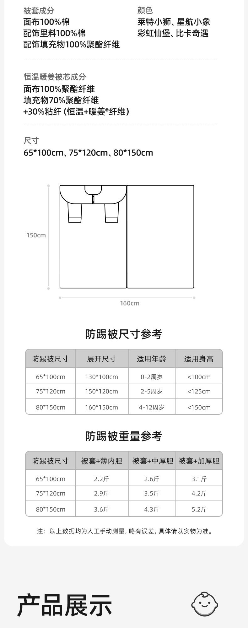 • 탈부착 가능한 라이너 [가을, 겨울 중간 두께, 실온 12-22 ℃ 】별항공 아기코끼리