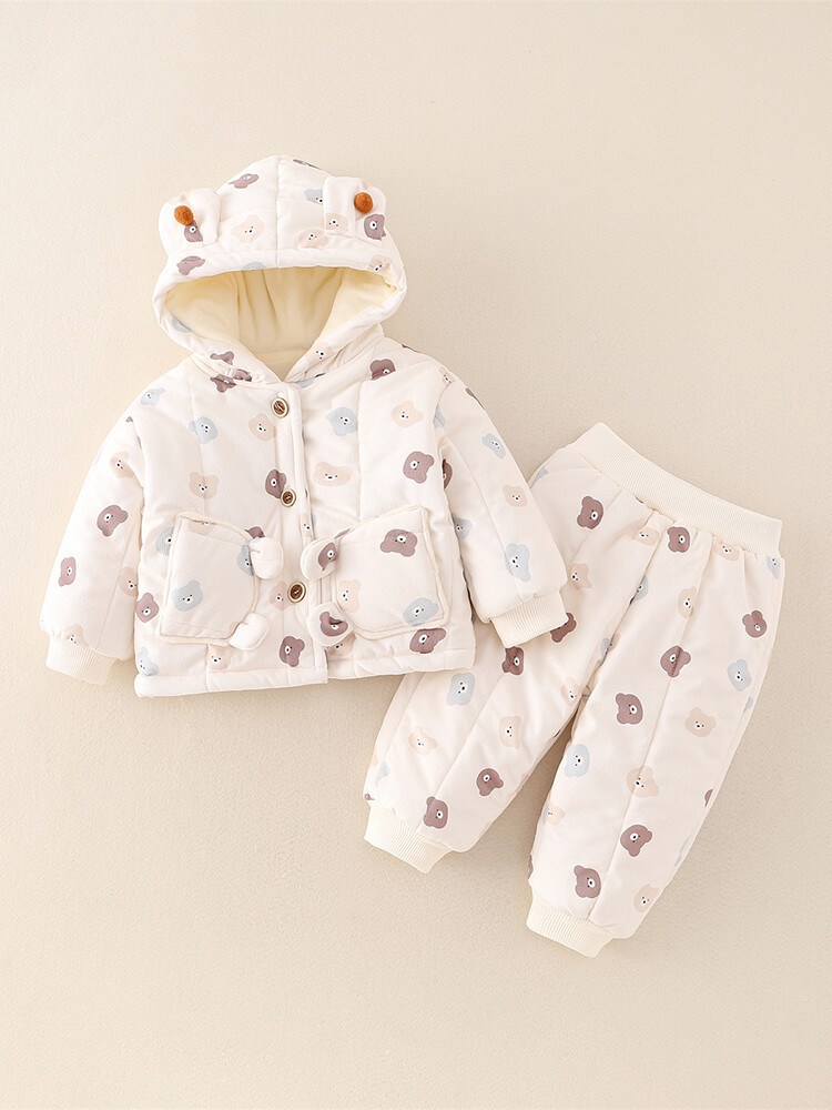 아기 세트 겨울 2024 남학생과 여학생을위한 새로운 아기 옷 유행 기모 면화 2 피스 세트 조수스토어 가기