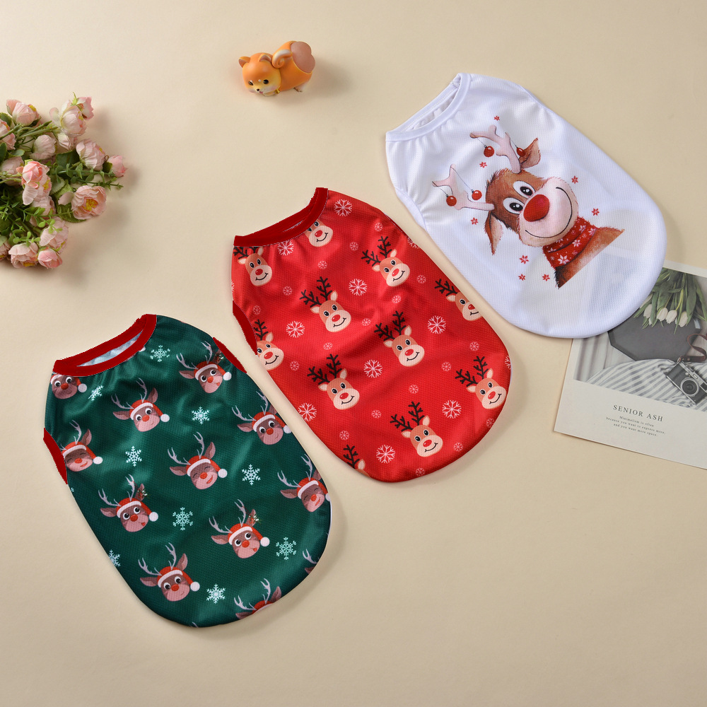 크리스마스 애완 동물 개 인쇄 만화 귀여운 조끼 테디 작은 개 얇은 통기성 개 조끼
