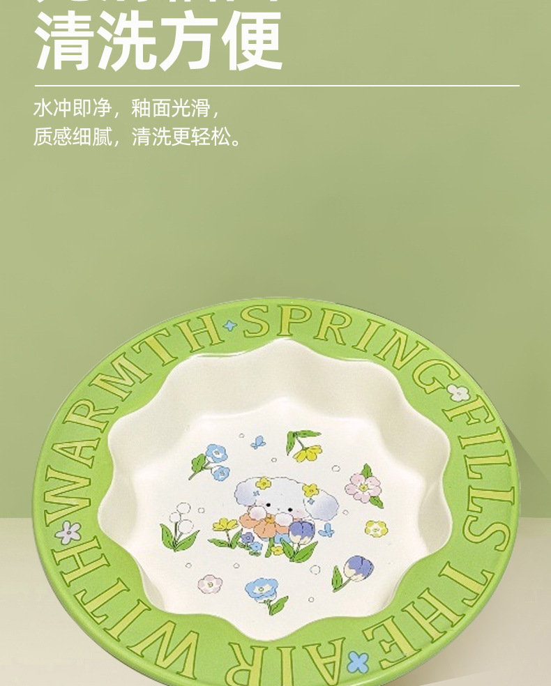 • 편평한 입 녹색 토끼 세라믹 그릇