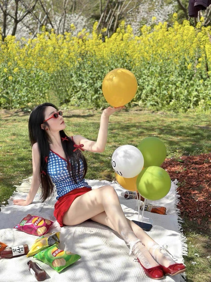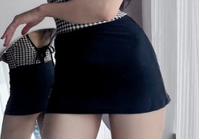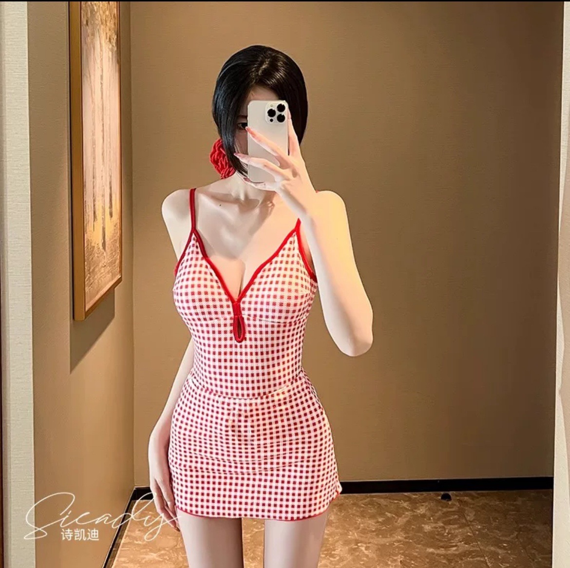 • 빨간색 수영복 + 빨간색 체크 무늬 스커트
