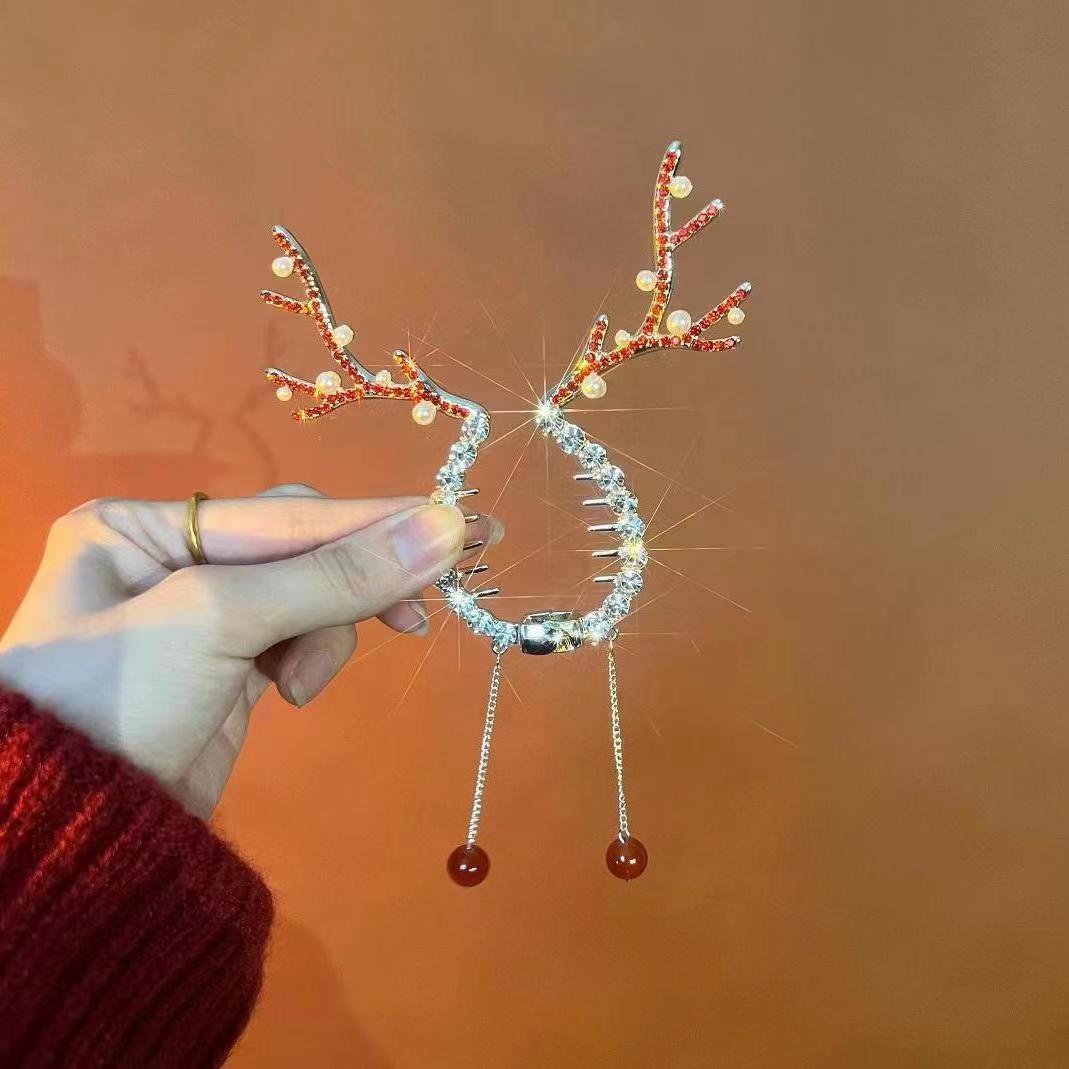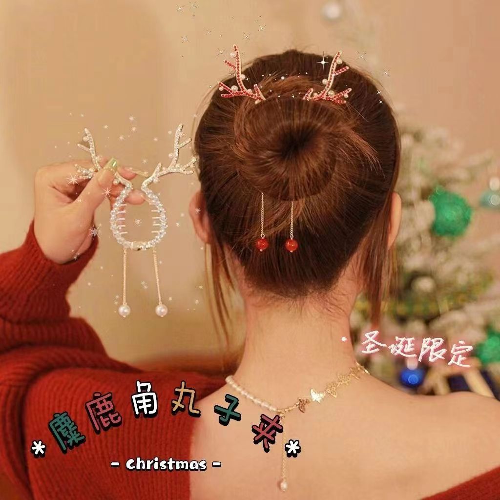 높은 말꼬리 머리핀 크리스마스 앤틀러 볼 헤어 헤어 액세서리 새로운 하이 엔드 센스 술 헤어 버클 헤드 헤어 헤드웨어 백