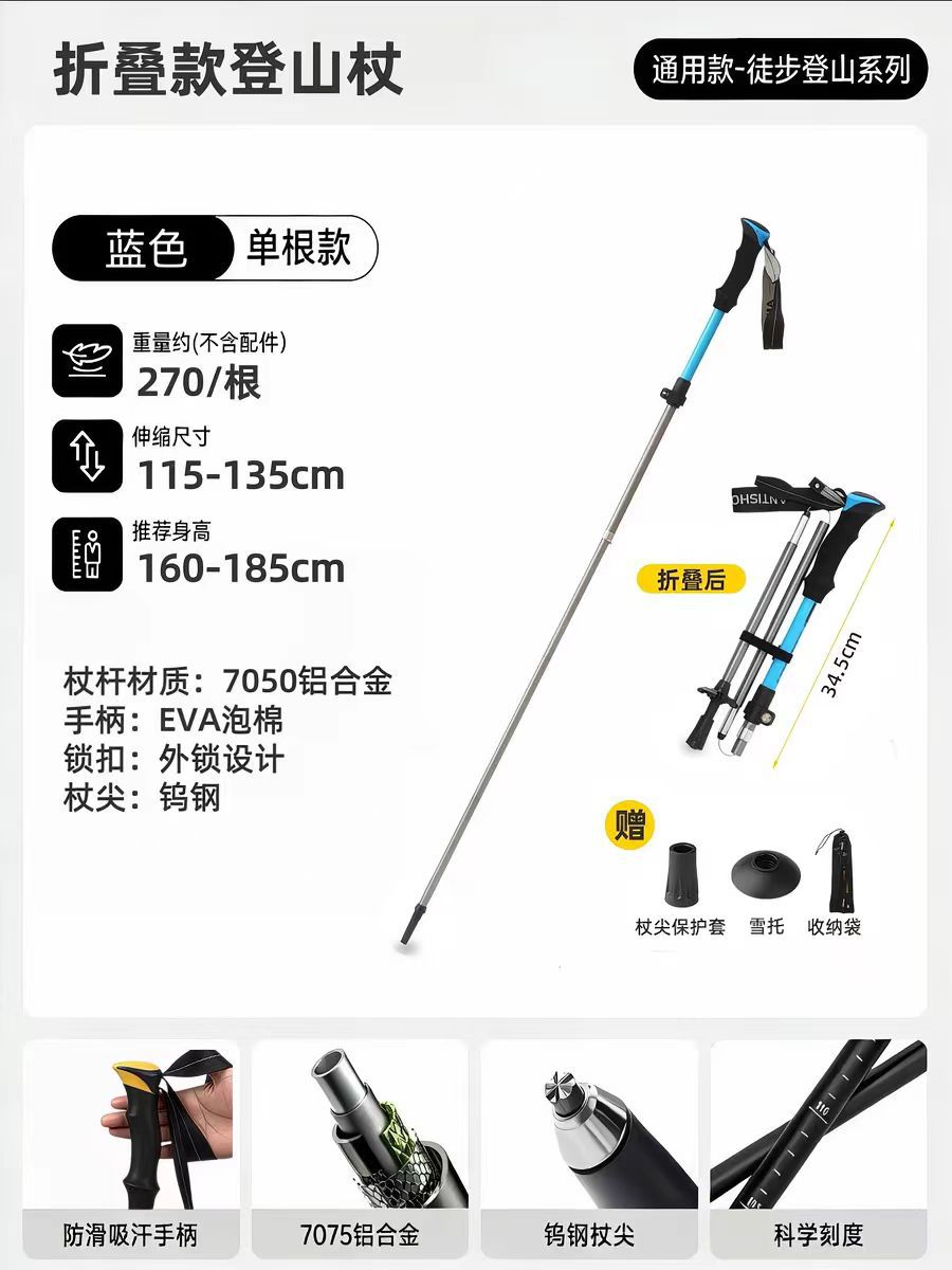 • 접이식 외부 잠금 장치 모델 [7075 알루미늄 합금/텅스텐 강철 지팡이 팁/접이식 34cm 개만] 하늘색