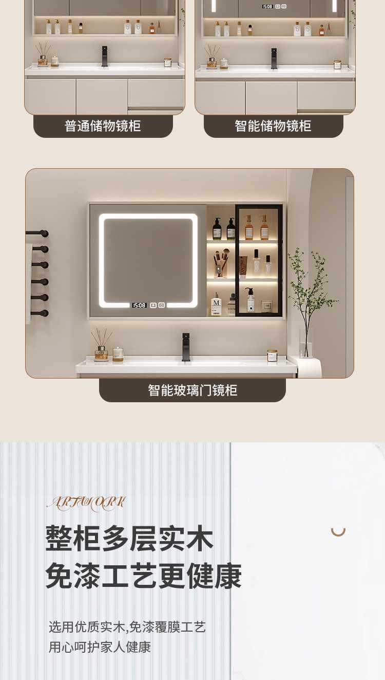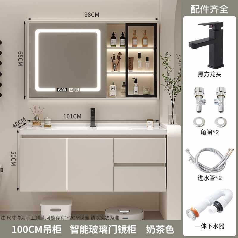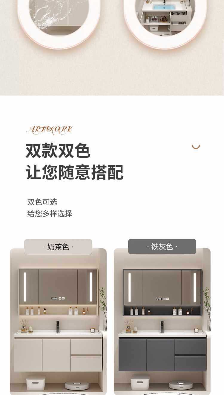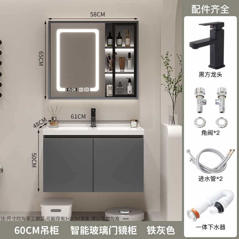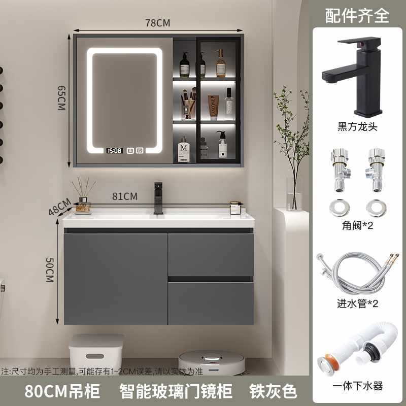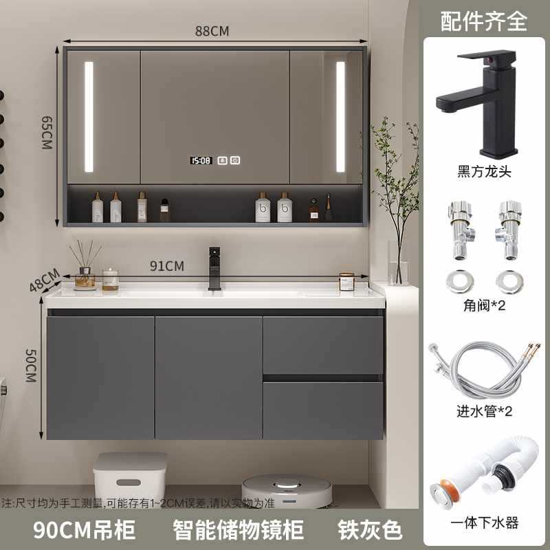 • 10038 라이트 럭셔리 그레이 벽 캐비닛 스마트 거울 캐비닛에는 검정색 사각형 수도꼭지가 함께 제공됩니다.
