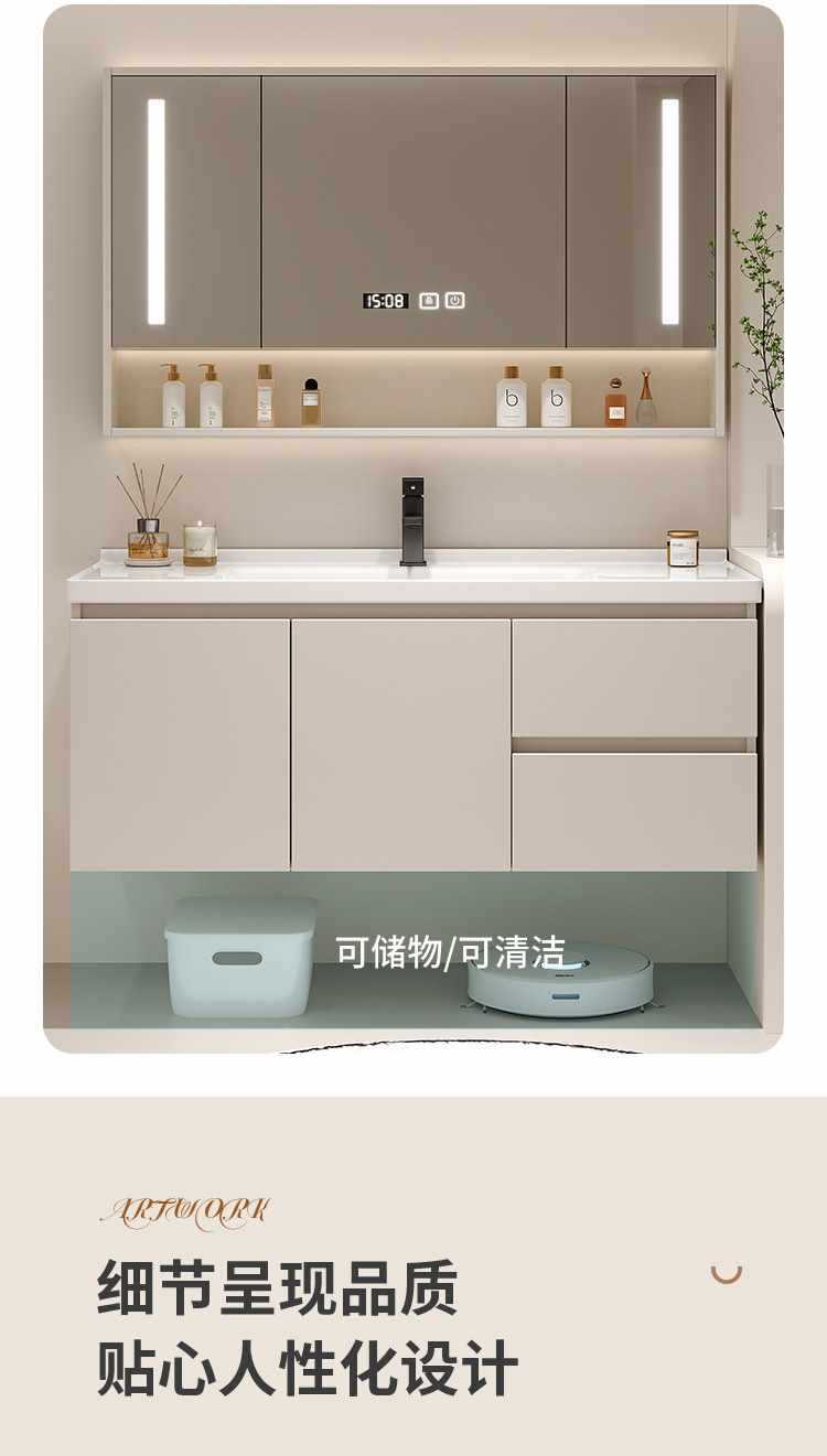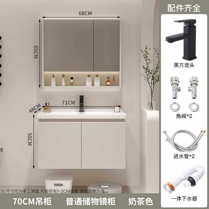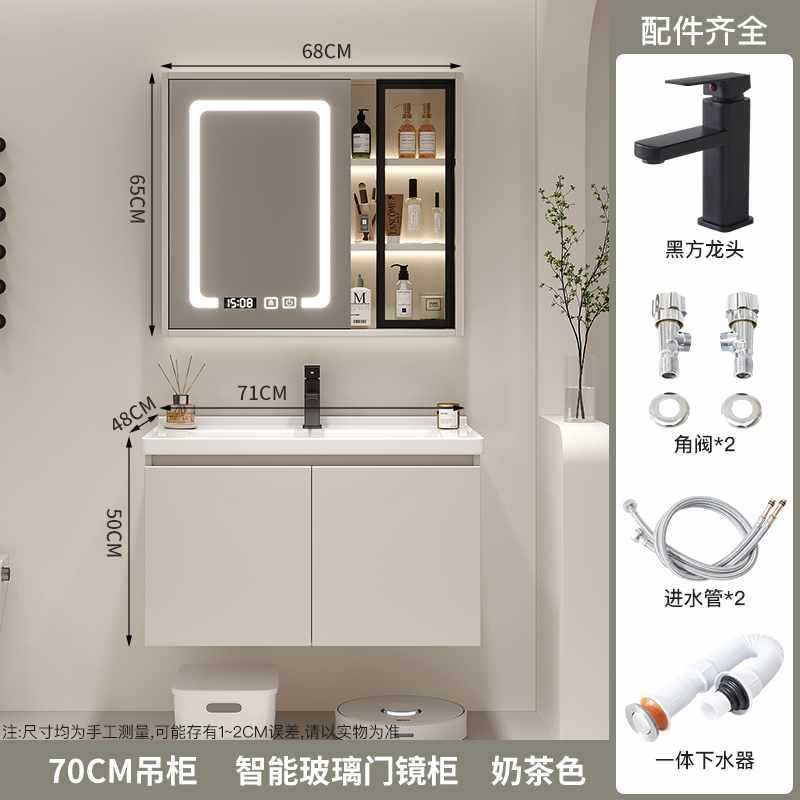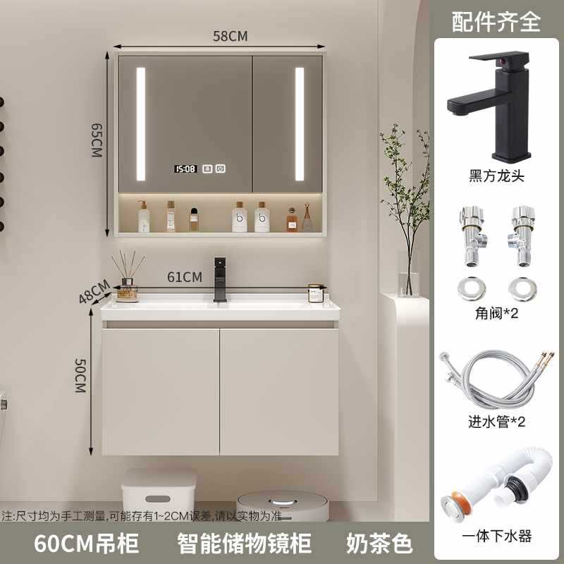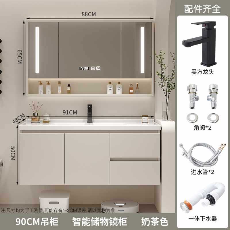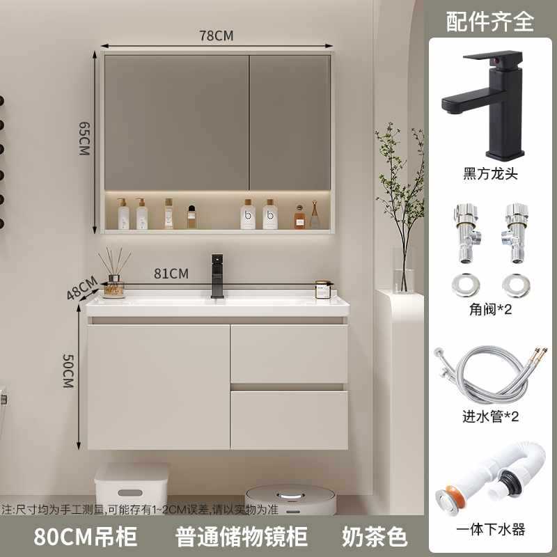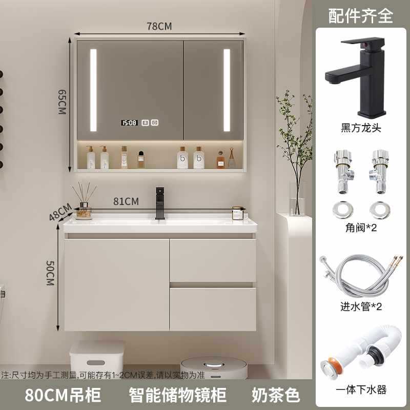 크림 컬러 세라믹 올인원 분지 욕실 캐비닛 조합 단단한 목재 욕실 세면대 세면대스토어 가기
