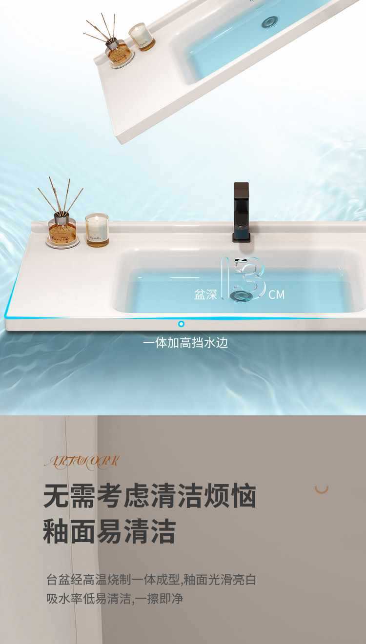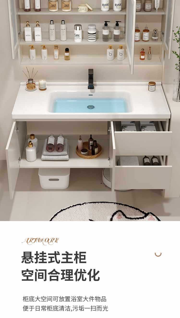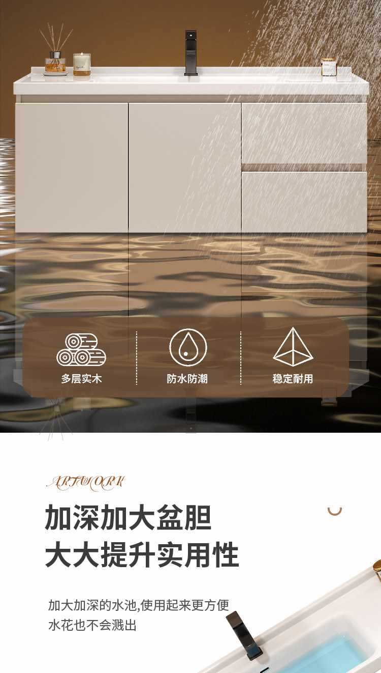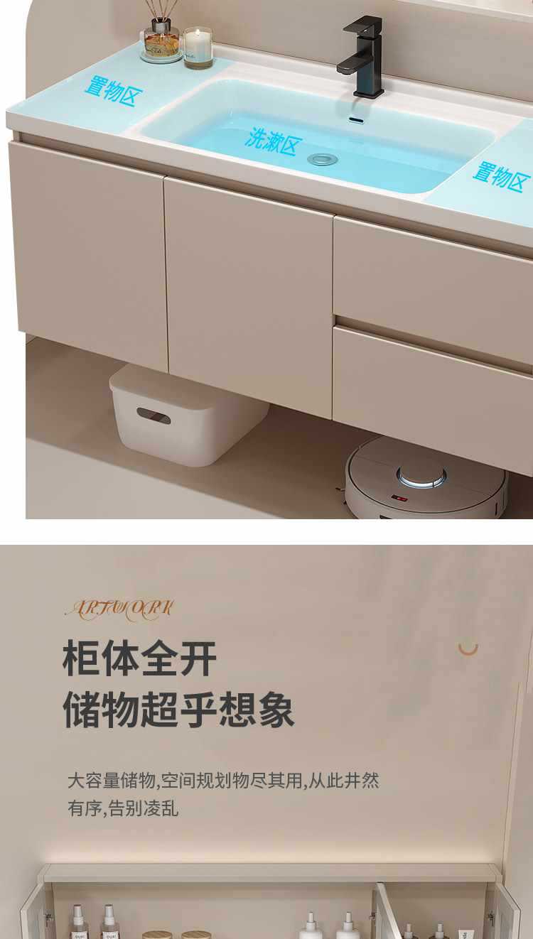 크림 컬러 세라믹 올인원 분지 욕실 캐비닛 조합 단단한 목재 욕실 세면대 세면대스토어 가기