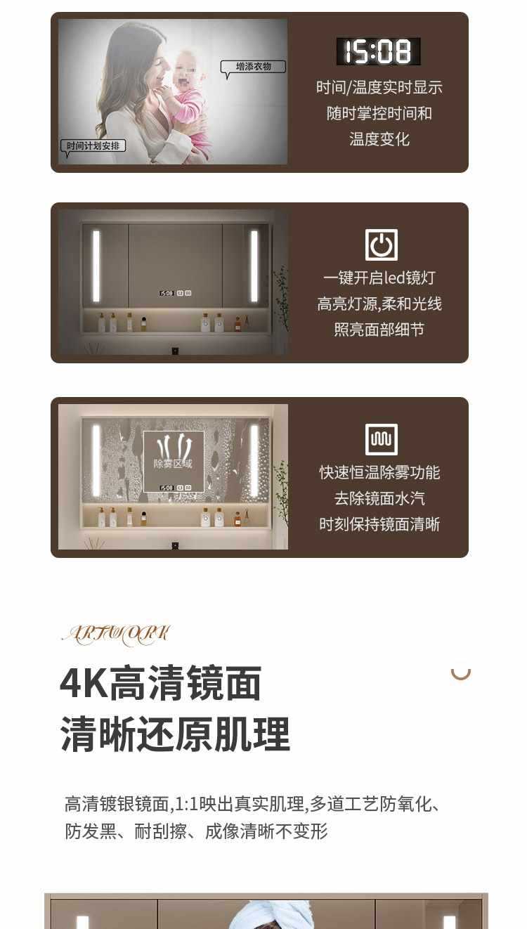 • 6038 라이트 럭셔리 그레이 벽 캐비닛 스마트 거울 캐비닛에는 검정색 사각형 수도꼭지가 함께 제공됩니다.