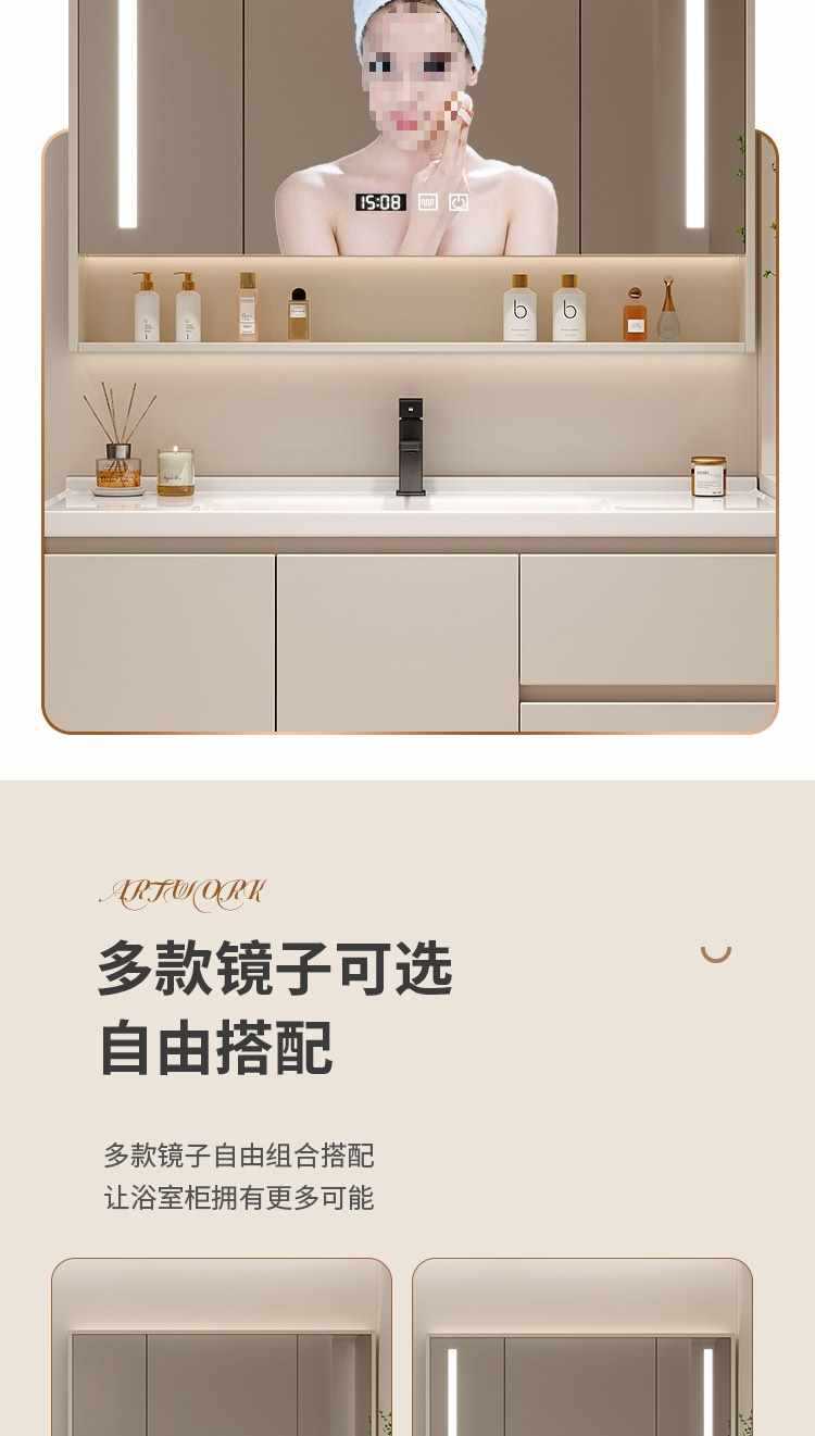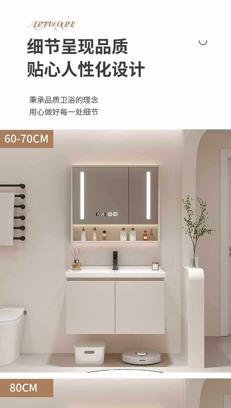 • 8038 라이트 럭셔리 그레이 벽 캐비닛 스마트 거울 캐비닛에는 검정색 사각형 수도꼭지가 함께 제공됩니다.