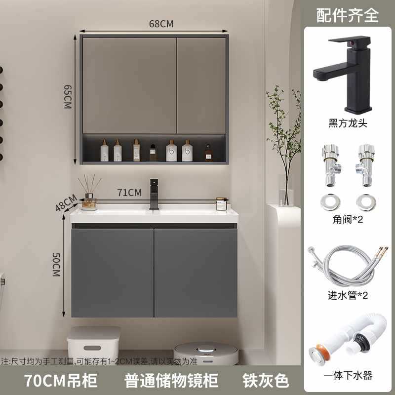 • 7038 라이트 럭셔리 그레이 벽 캐비닛, 일반 거울 캐비닛, 무료 검정색 사각형 수도꼭지