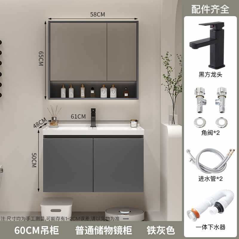 • 6038 라이트 럭셔리 그레이 벽 캐비닛, 일반 거울 캐비닛, 무료 검정색 사각형 수도꼭지
