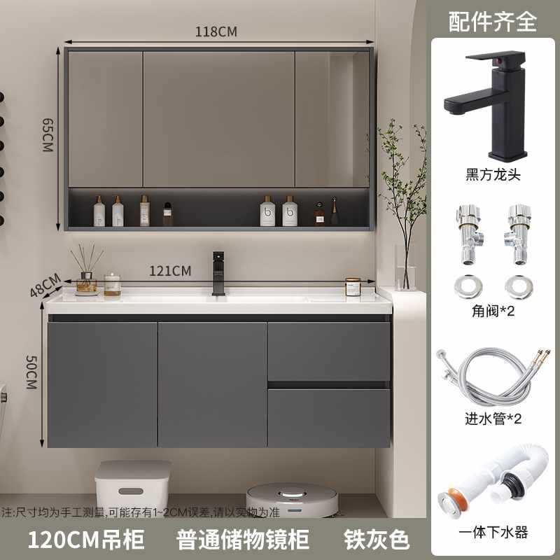 • 12038 라이트 럭셔리 그레이 벽 캐비닛, 일반 거울 캐비닛, 무료 검정색 사각형 수도꼭지