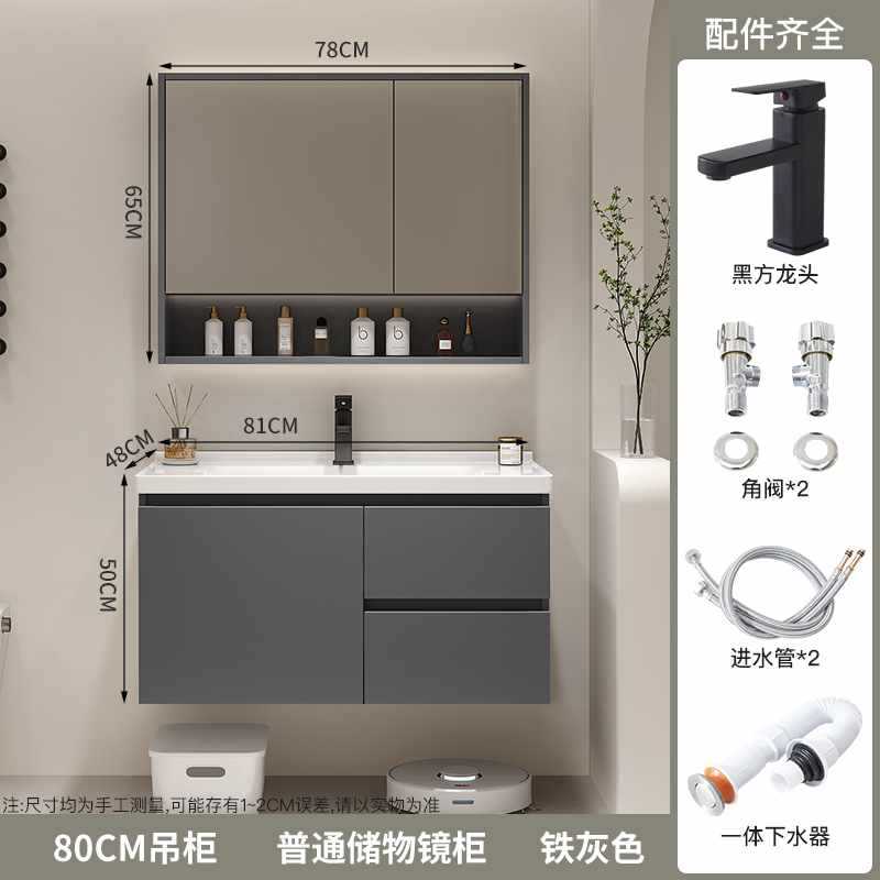 • 8038 라이트 럭셔리 그레이 벽 캐비닛, 일반 거울 캐비닛, 무료 검정색 사각형 수도꼭지