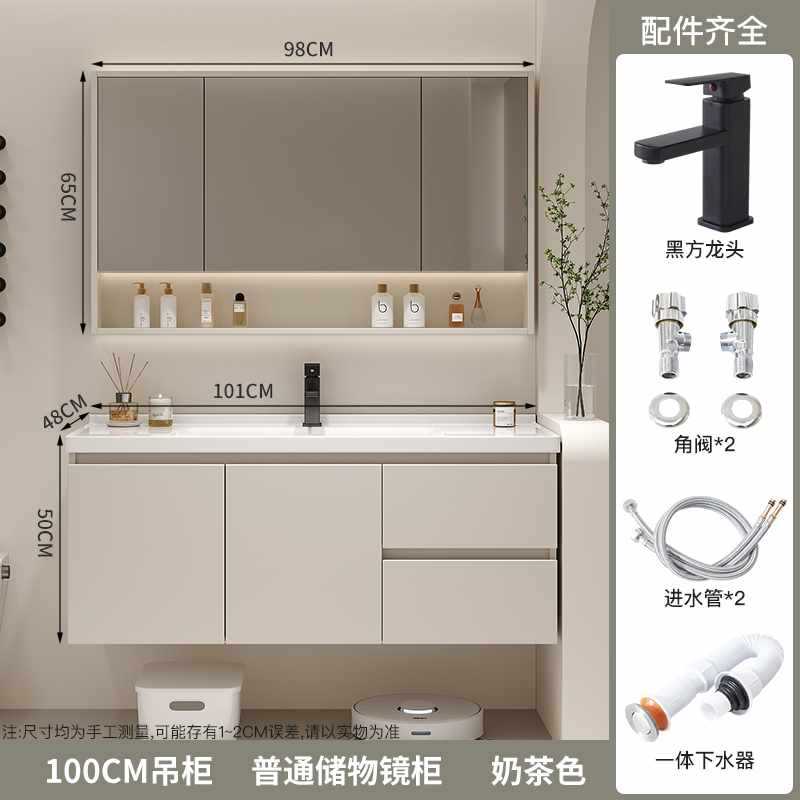 • 10038 라이트 럭셔리 그레이 벽 캐비닛, 일반 거울 캐비닛, 무료 검정색 사각형 수도꼭지