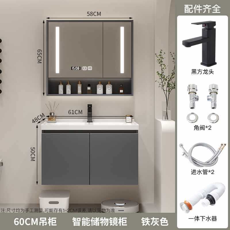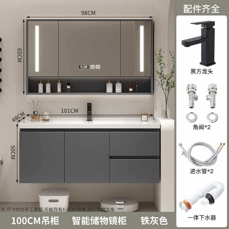 • 11038 라이트 럭셔리 그레이 벽 캐비닛, 일반 거울 캐비닛, 무료 검정색 사각형 수도꼭지