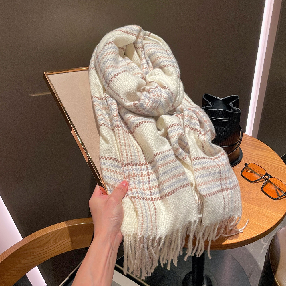화이트 에이지 감소 격자 무늬 스카프 여성 겨울 새 술 따뜻한 스카프 일본식 하이 엔드 스타일 아우터 숄 학생용스토어 가기