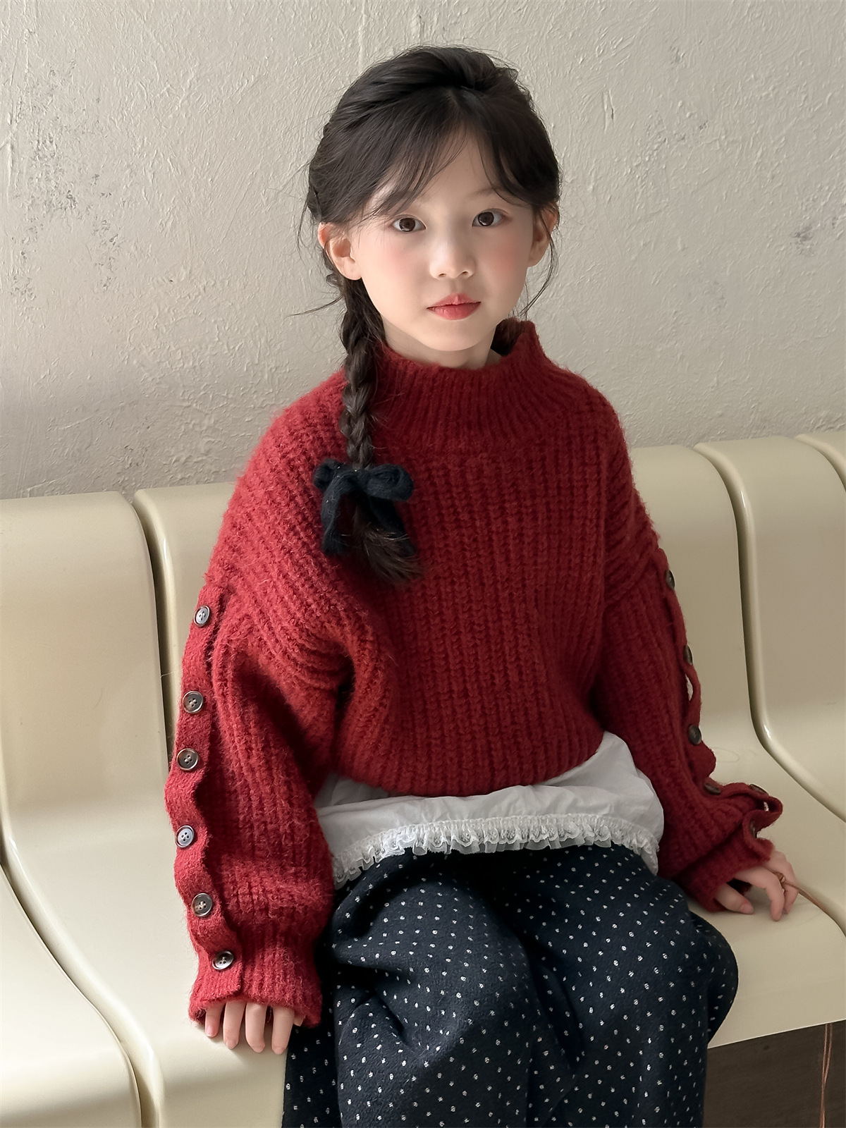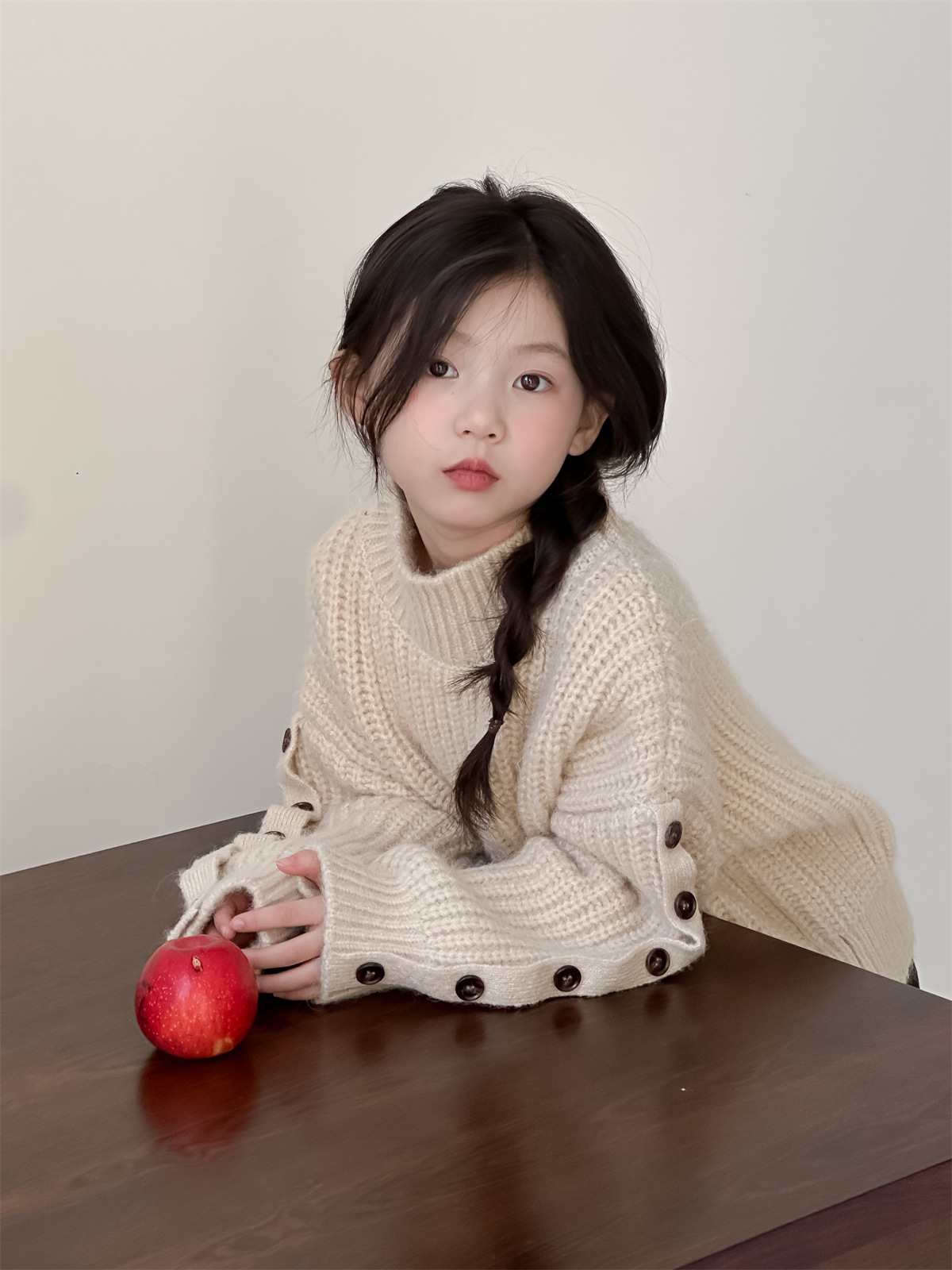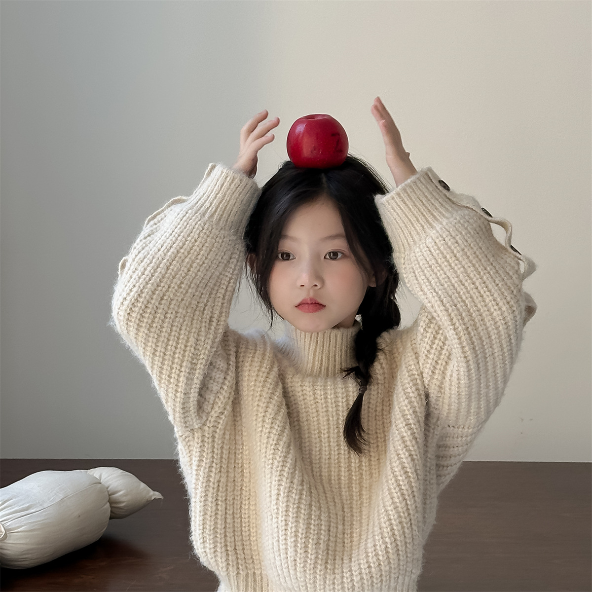 큰 아이들을위한 2024 년 새로운 겨울 소녀 두꺼운 스웨터의 꽃과 한국 버전을 찾아 아기 두꺼운 풀오버 스웨터 조수