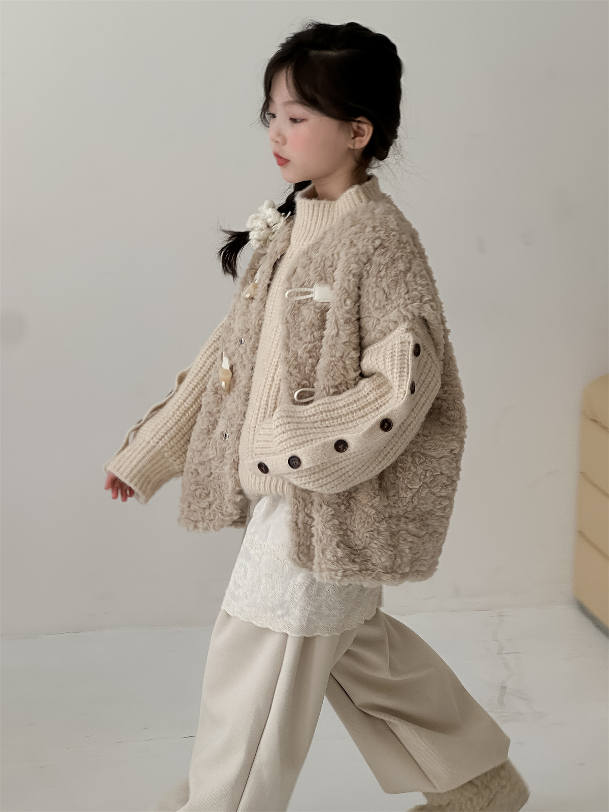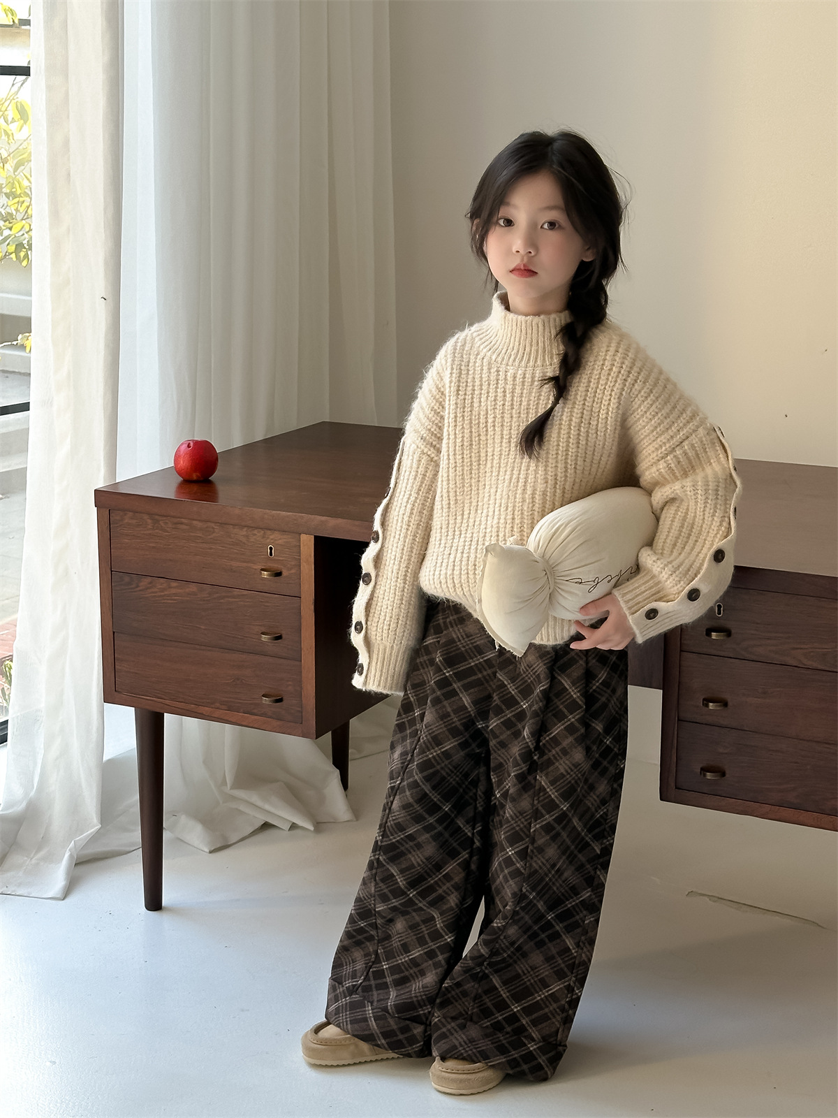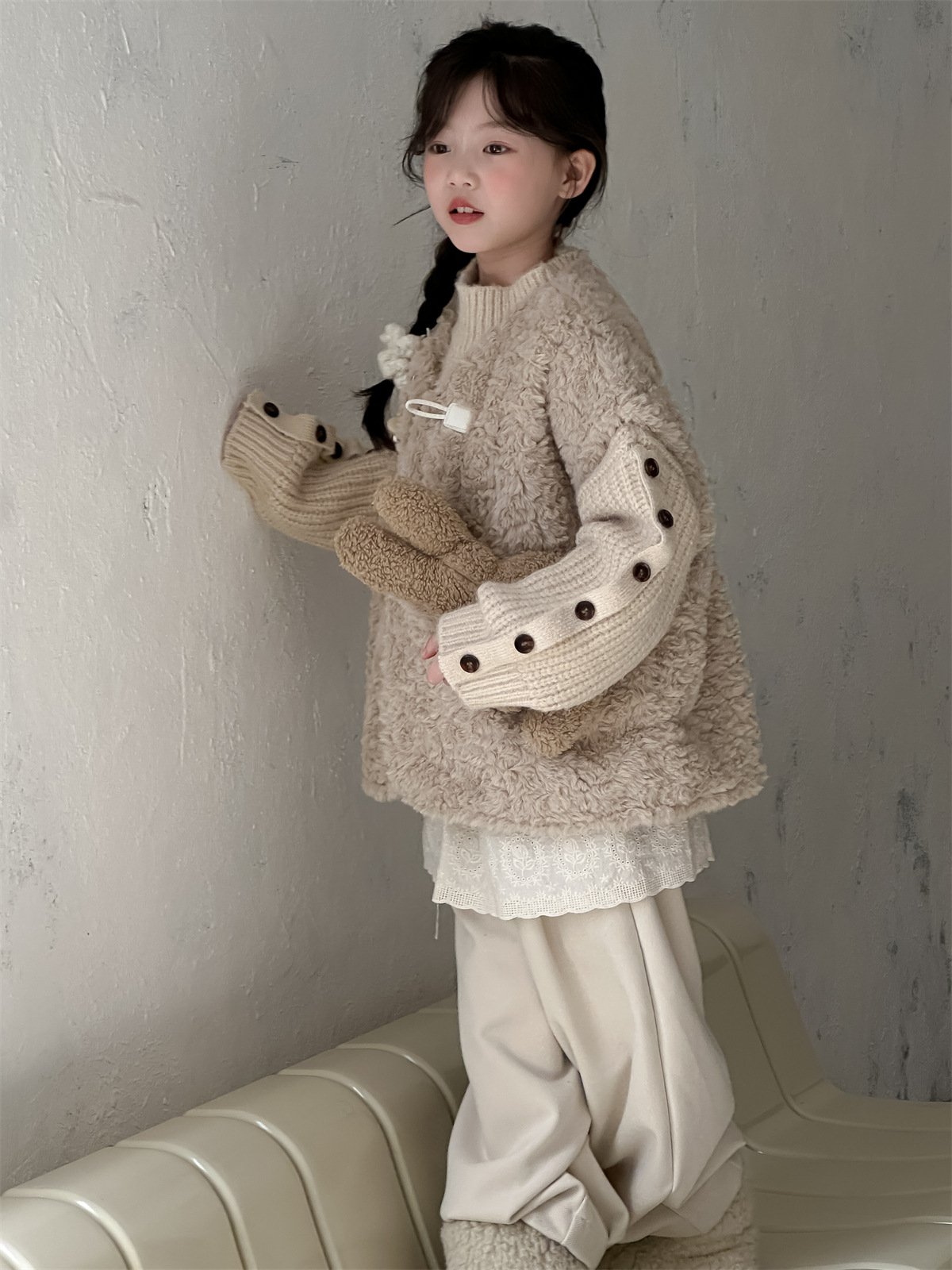 큰 아이들을위한 2024 년 새로운 겨울 소녀 두꺼운 스웨터의 꽃과 한국 버전을 찾아 아기 두꺼운 풀오버 스웨터 조수