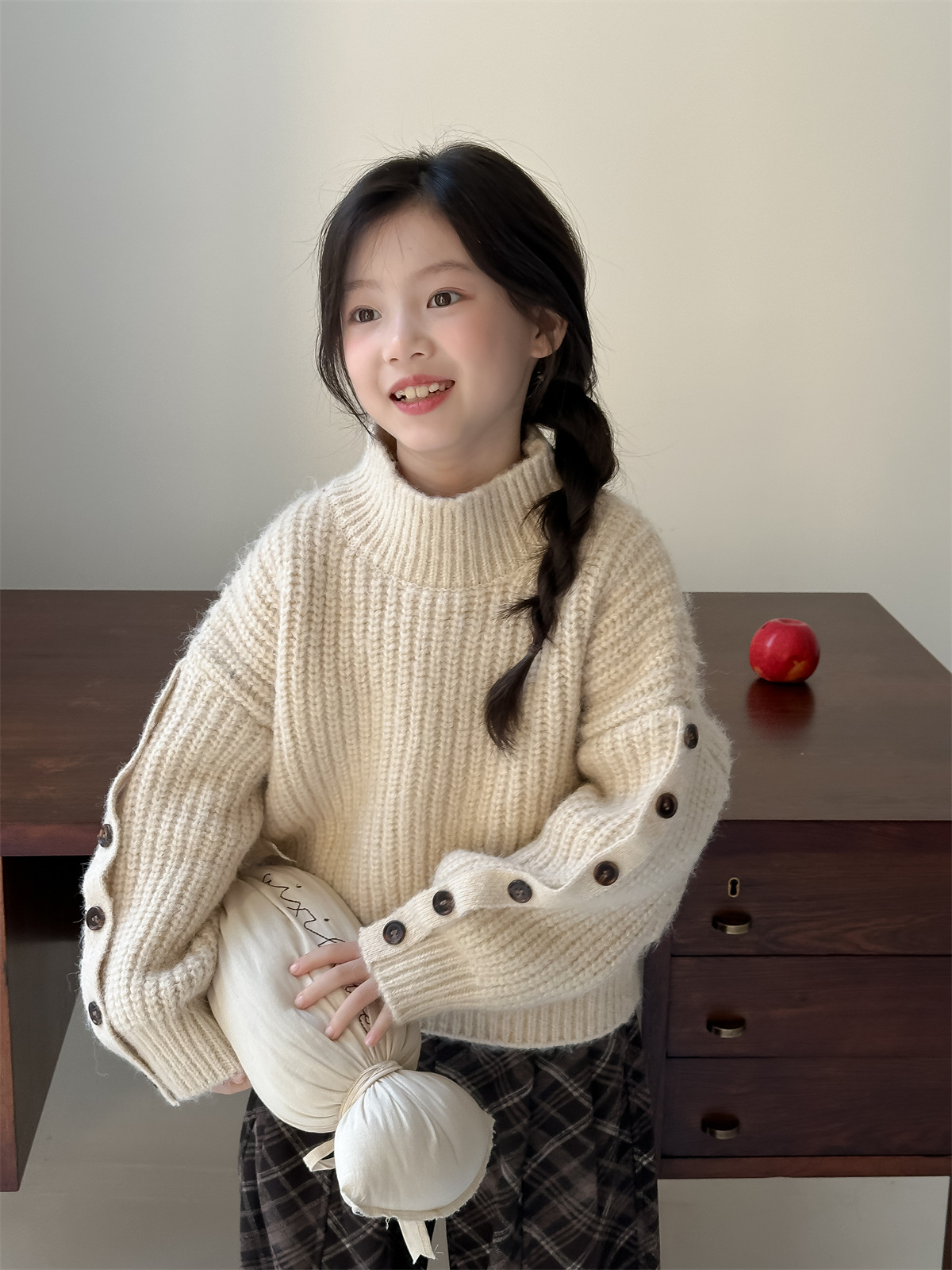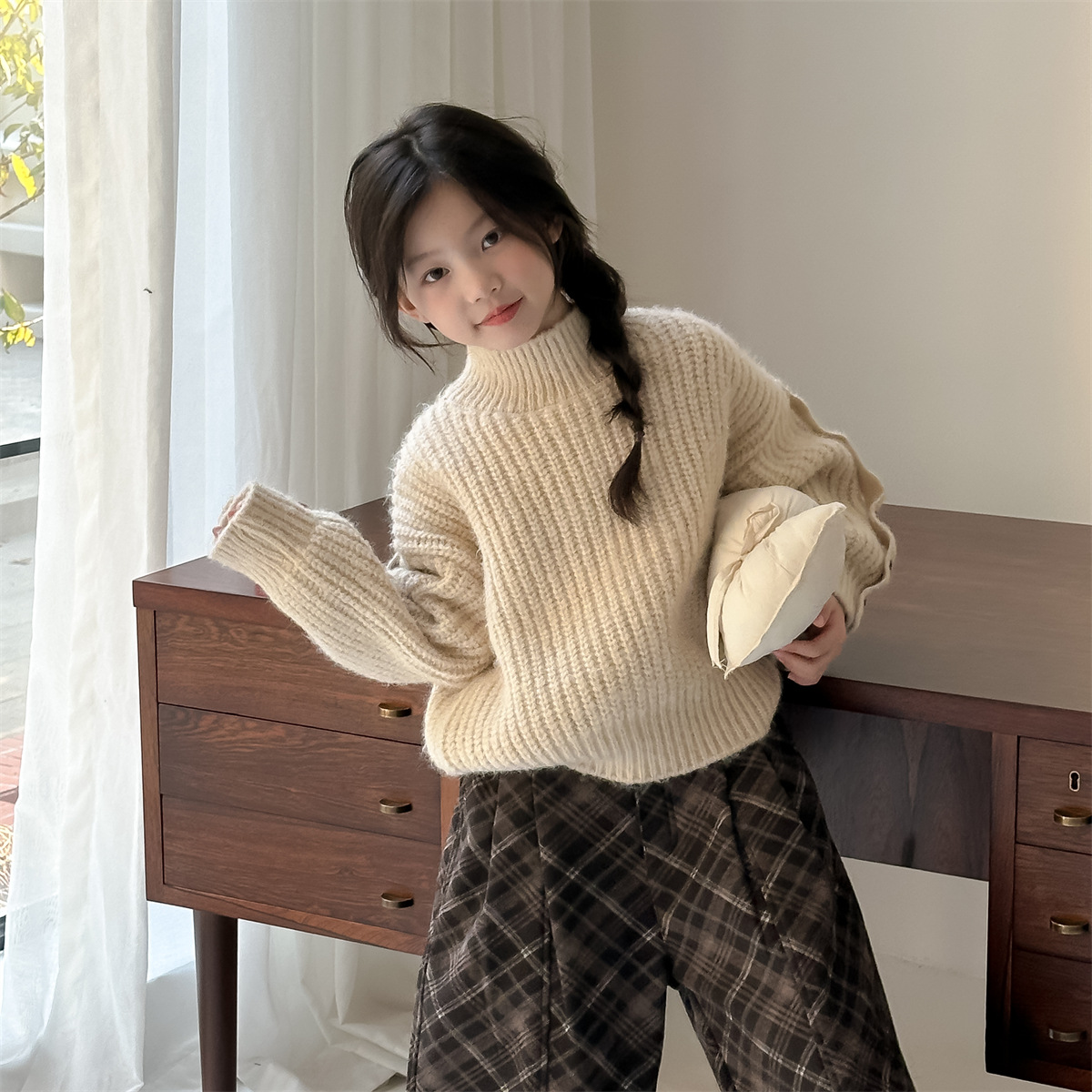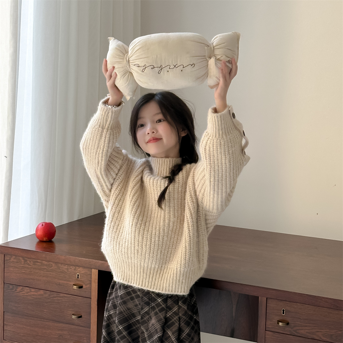 큰 아이들을위한 2024 년 새로운 겨울 소녀 두꺼운 스웨터의 꽃과 한국 버전을 찾아 아기 두꺼운 풀오버 스웨터 조수스토어 가기