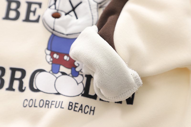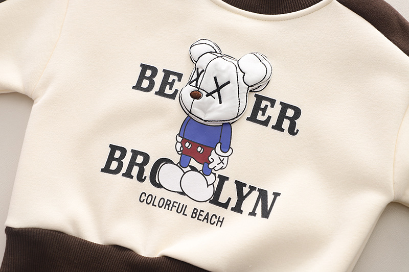 남자 아기의 가을 겨울 의류 세트 2024 새로운 어린이 옷 서양식 겨울 기모 스웨트 셔츠 바지 투피스 세트