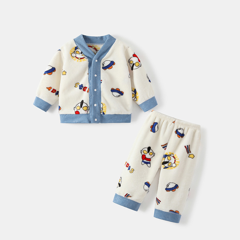 아기의 두꺼운 코트 따뜻한 세트 소년 소녀들의 가을과 겨울 기모 플란넬 홈 옷 아기의 분할 잠옷