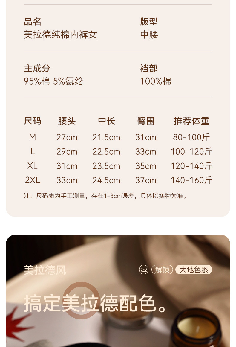 Maillard Cotton 속옷 여성의 Tracless Mid-Waist Briefs 고관절 플러스 사이즈 여성용 스포츠 속옷스토어 가기