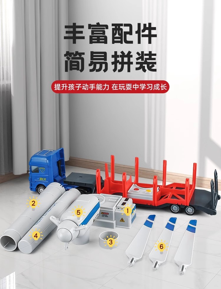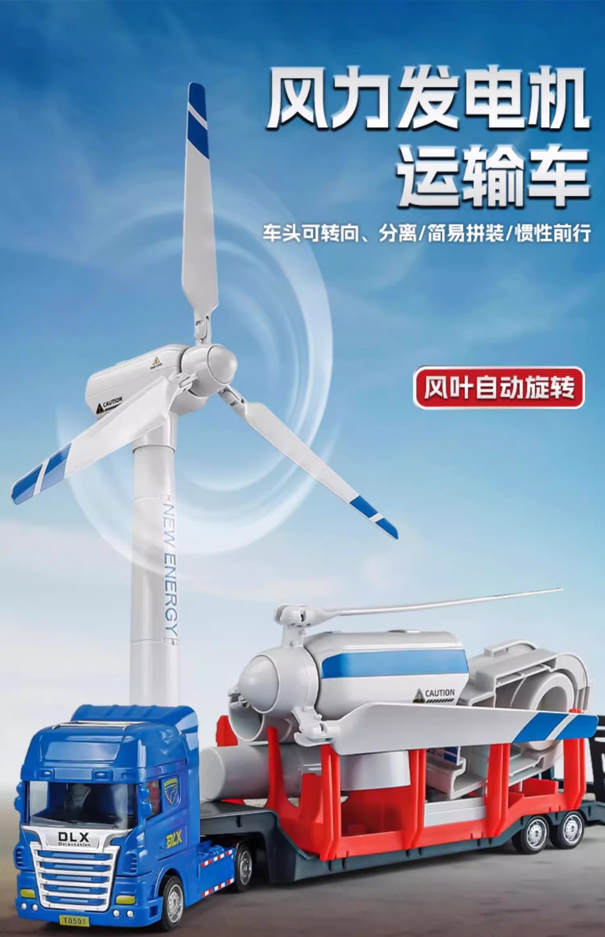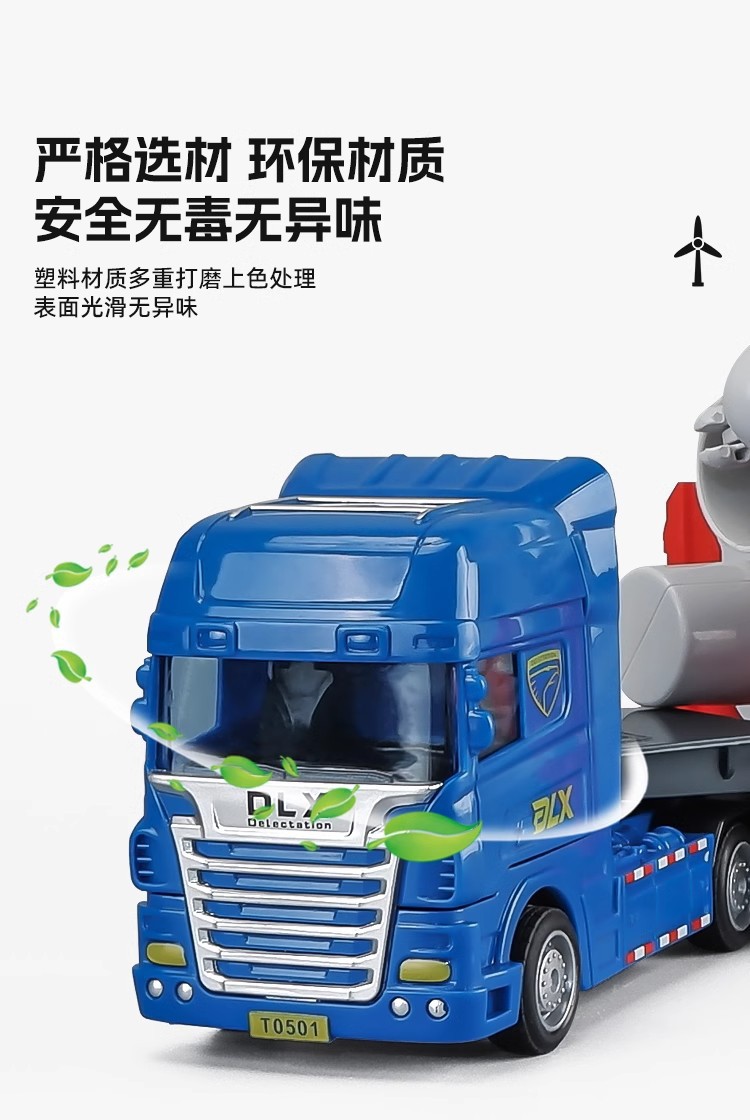 시뮬레이션 풍력 터빈 대형 평면 트레일러 엔지니어링 차량 모델 풍차 관성 수송 차 어린이 장난감스토어 가기