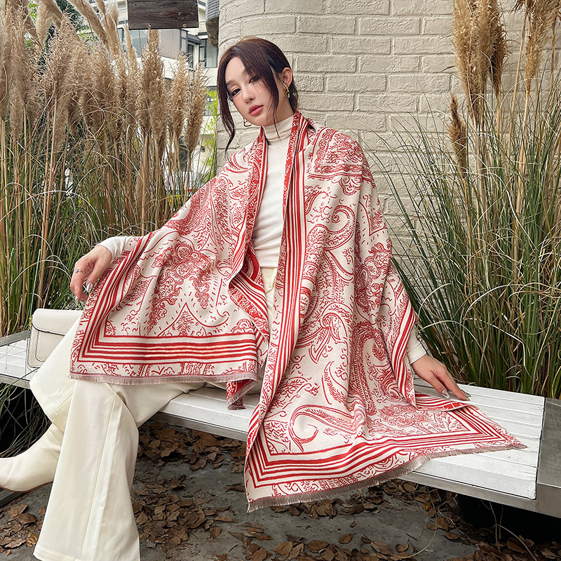 레드 스카프 여자 가을 겨울 한국식 올 매치 어머니 캐시미어 로즈 에어컨 용 두꺼운 이중 양면 목도리