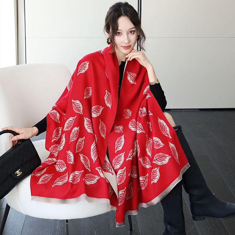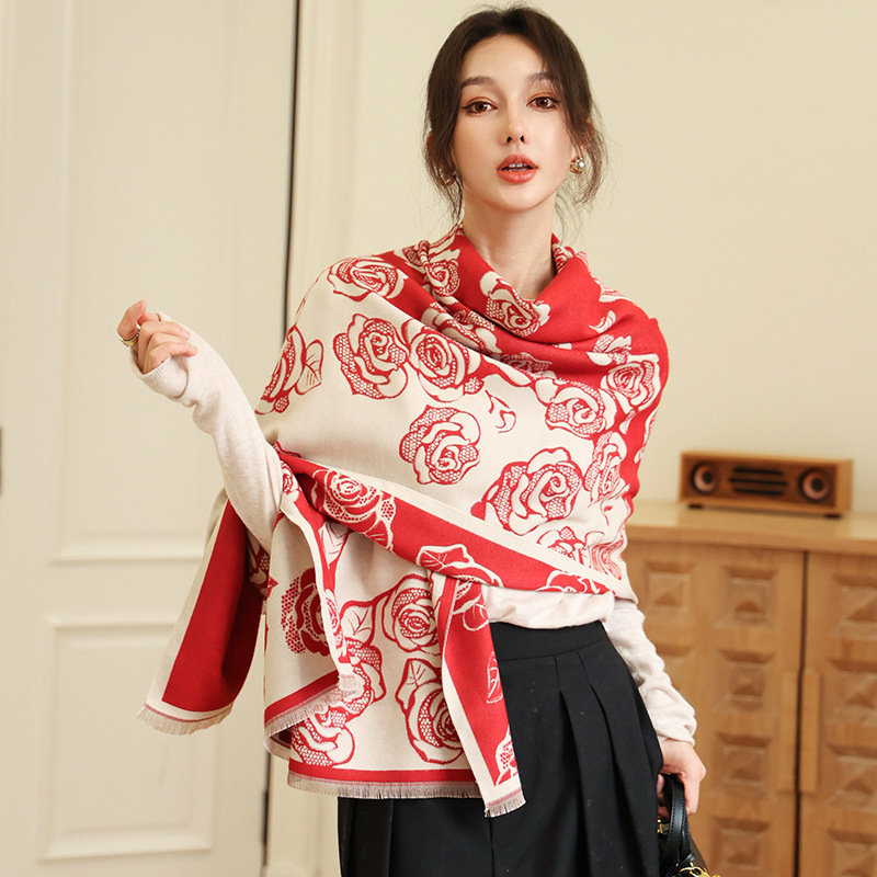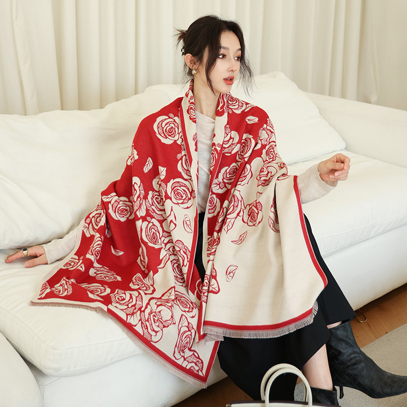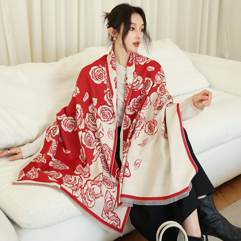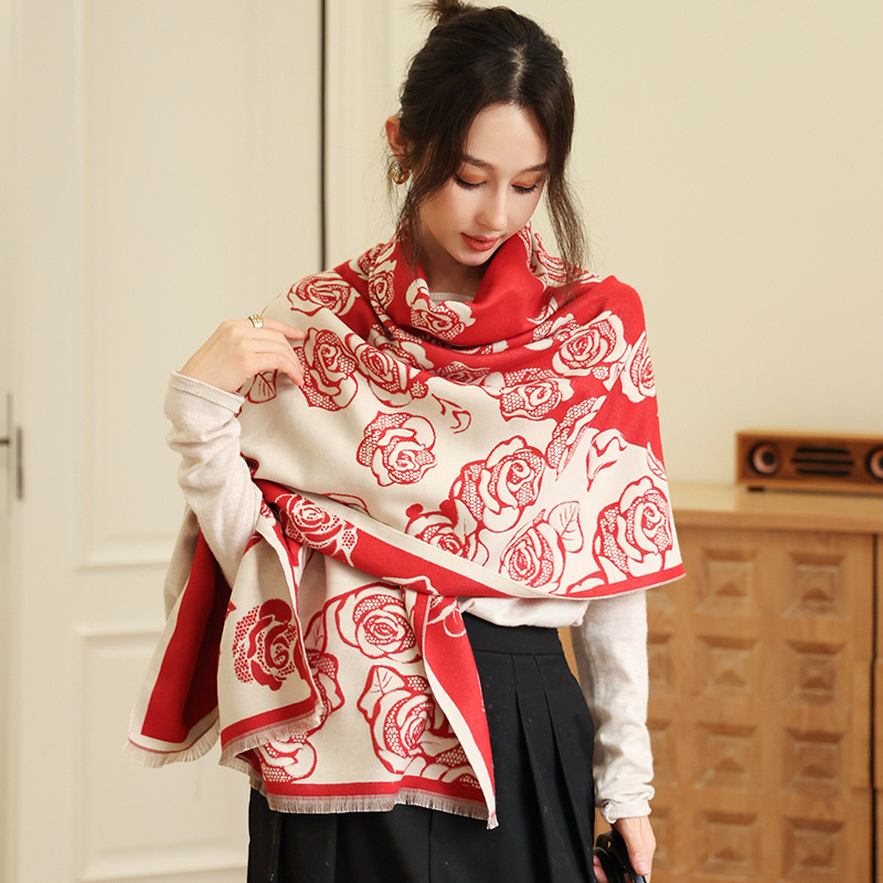 레드 스카프 여자 가을 겨울 한국식 올 매치 어머니 캐시미어 로즈 에어컨 용 두꺼운 이중 양면 목도리스토어 가기