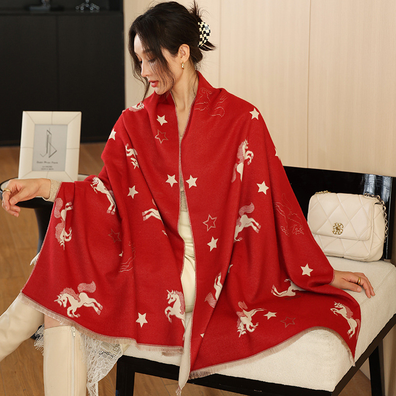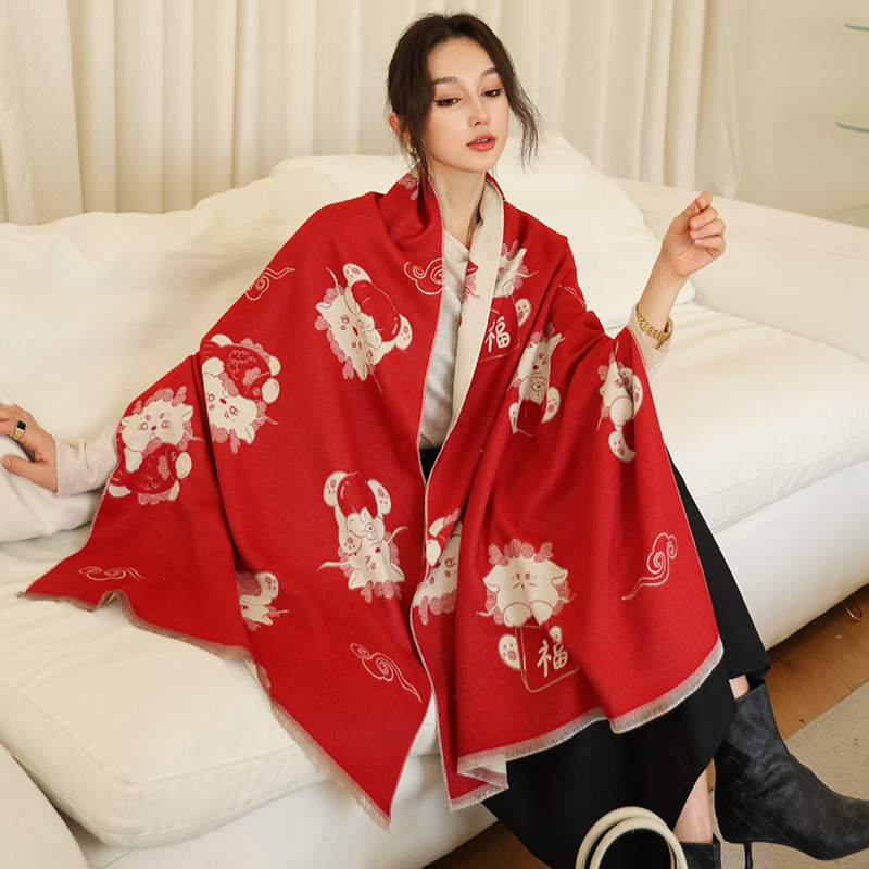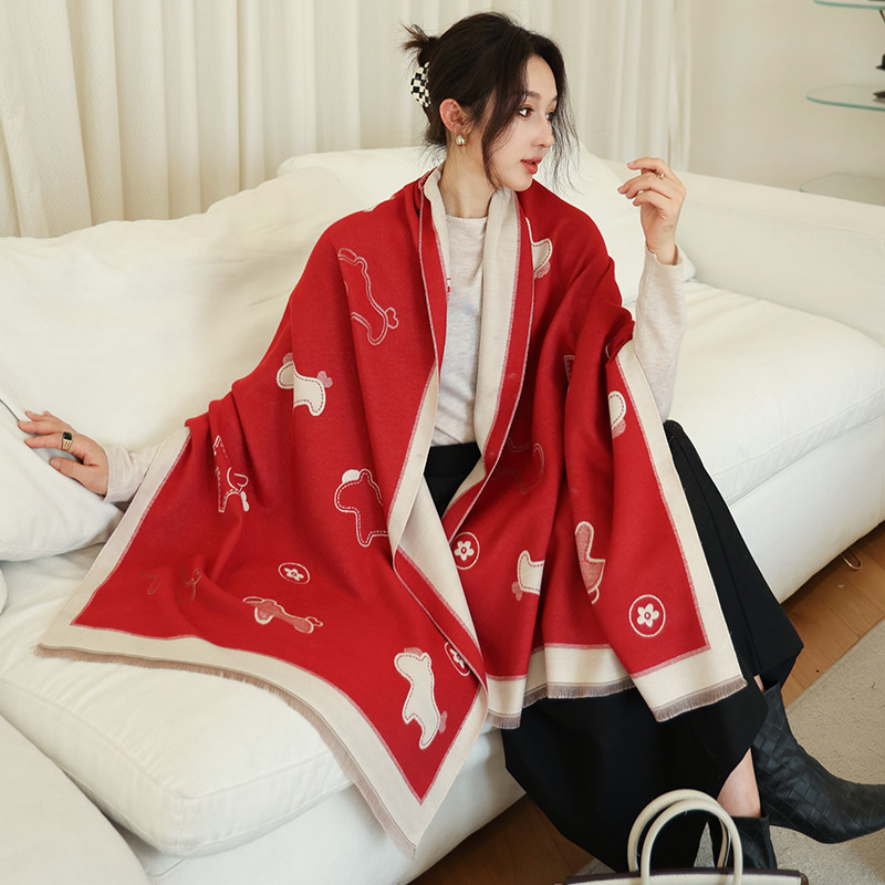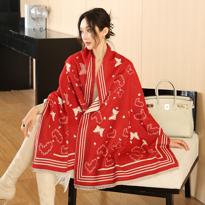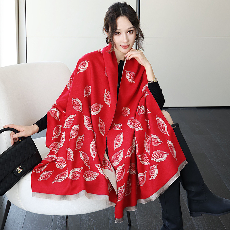 레드 스카프 여자 가을 겨울 한국식 올 매치 어머니 캐시미어 로즈 에어컨 용 두꺼운 이중 양면 목도리스토어 가기