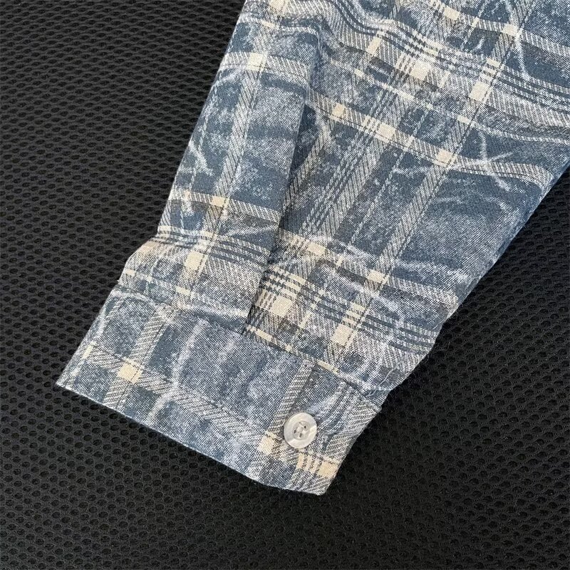 트렌디 한 브랜드 여름 하이 엔드 센스 패션 올 매치 트리 패턴 세척 격자 무늬 셔츠 틈새 디자인 남성과 여성을위한 올 매치 긴 소매스토어 가기