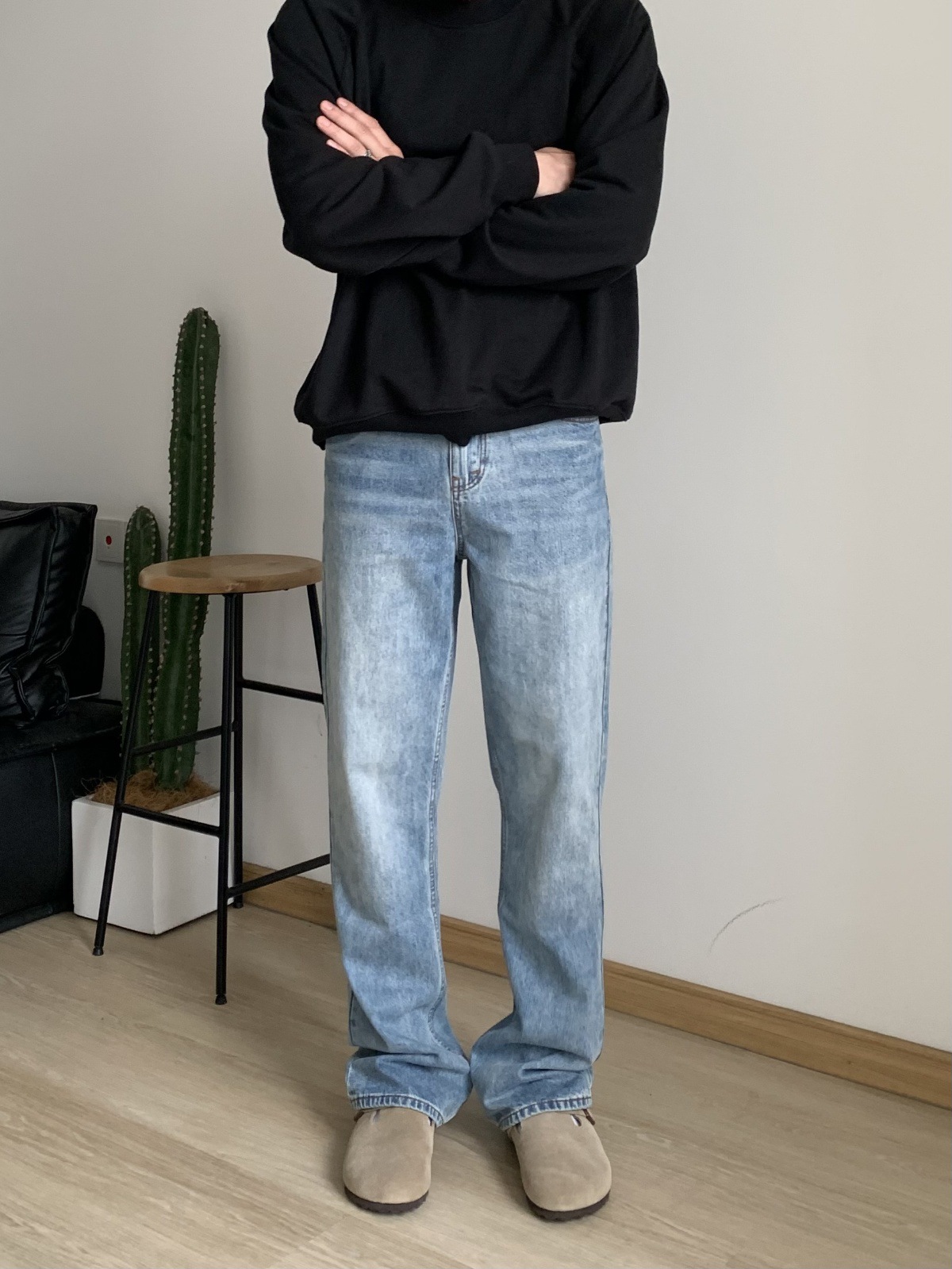 2024 미국 빈티지 라이트 블루 씻은 아픈 vintage517 스타일 마이크로 블라 진 청바지 남성용 클린 핏스토어 가기
