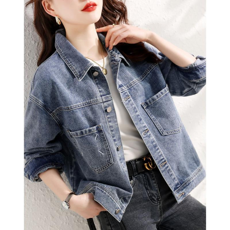 국경 간 데님 코트 여자 짧은 봄과 가을 새로운 복고풍 우아한 느슨한 슬리밍 올 매치 재킷 카디건 탑 트렌디스토어 가기