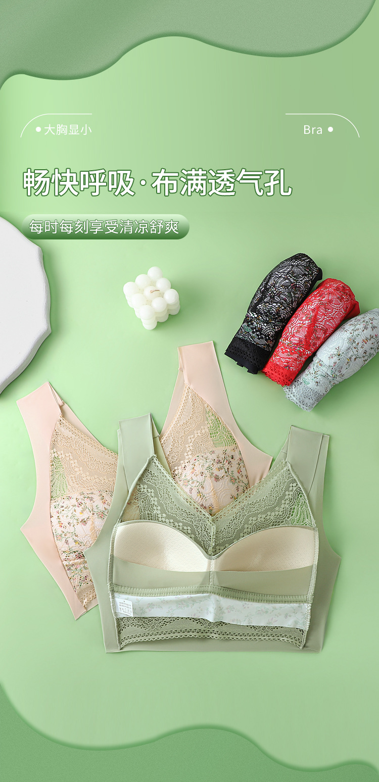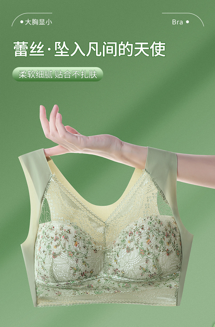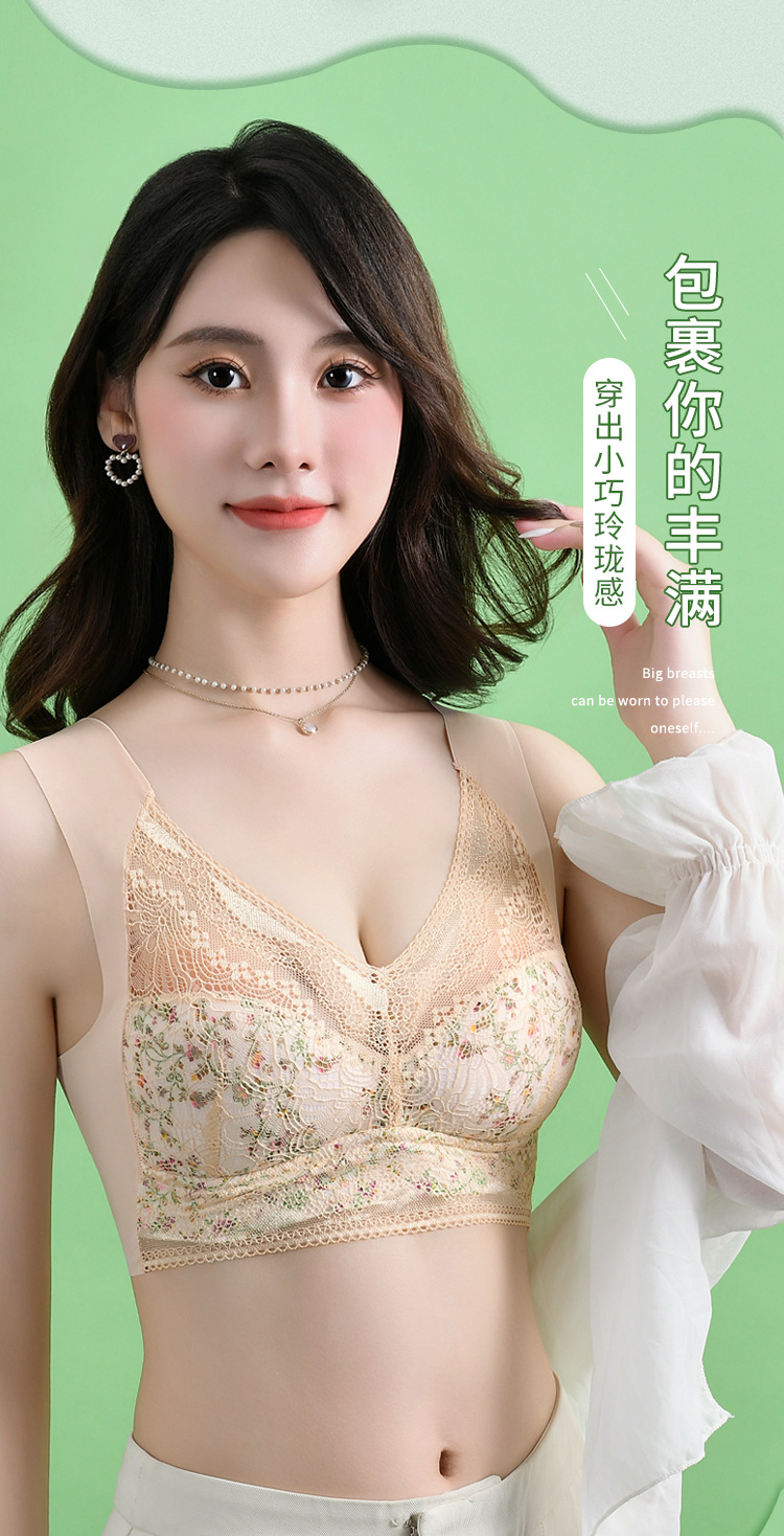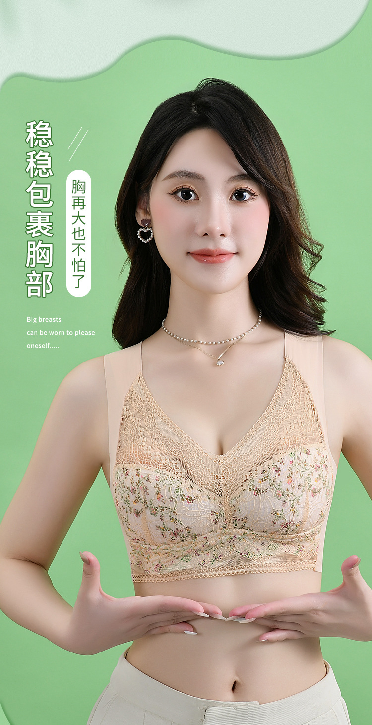 플러스 사이즈 초박형 속옷 여성용 무표 고정 컵 조정 방지 처짐 상부 지원 작은 꽃 레이스 브래지어스토어 가기