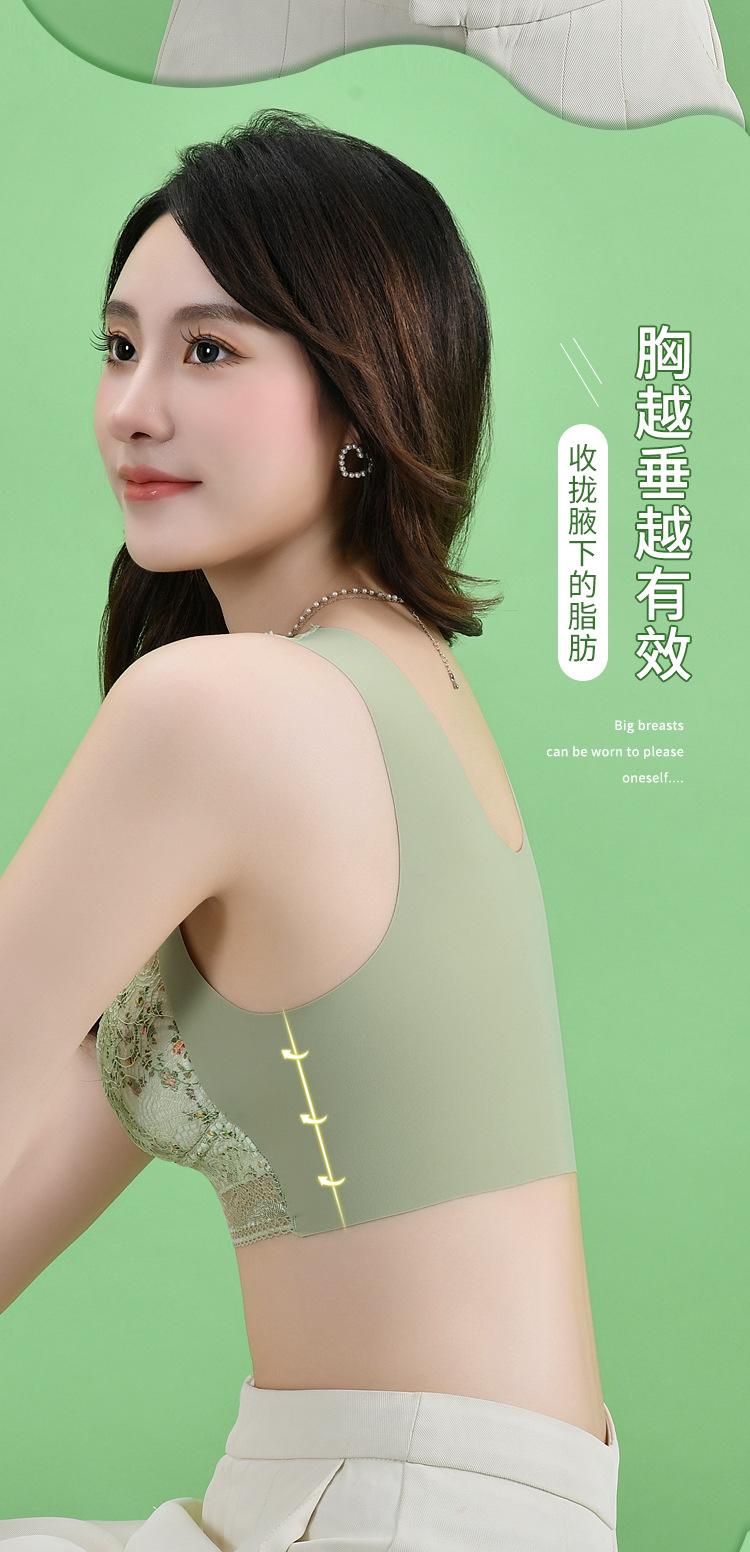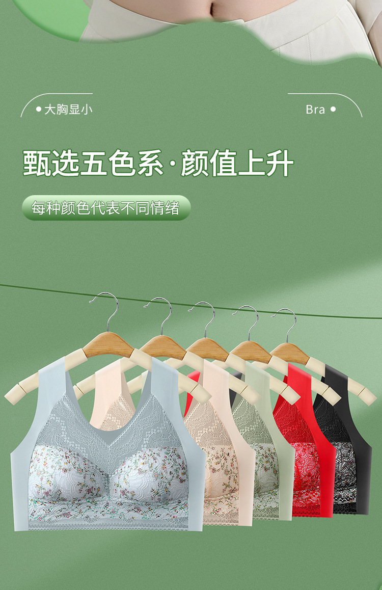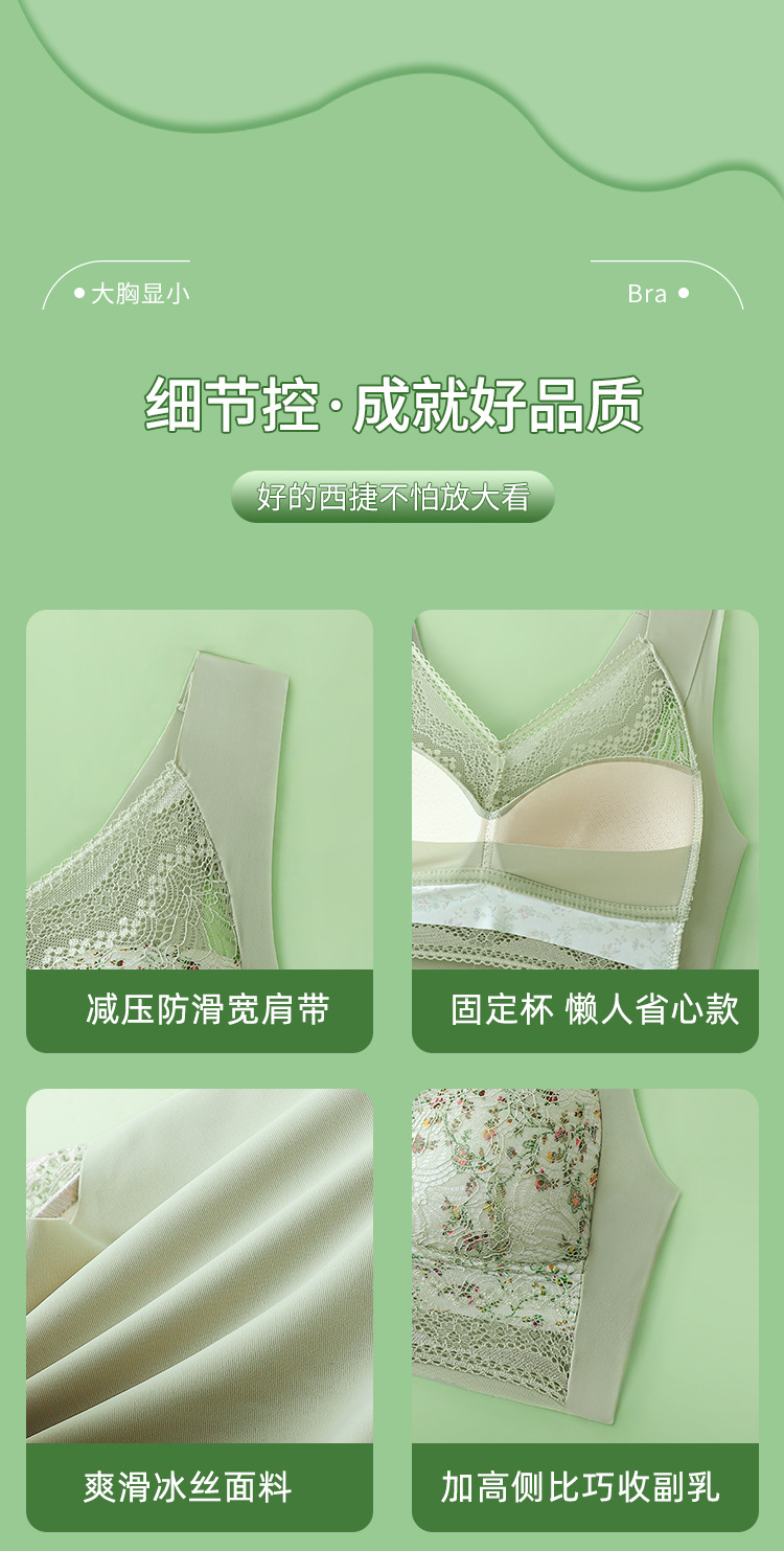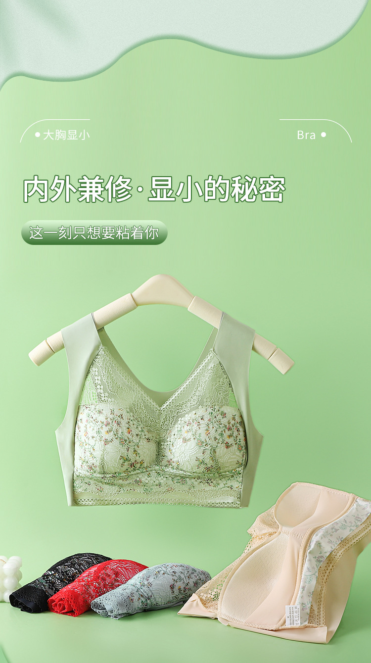 플러스 사이즈 초박형 속옷 여성용 무표 고정 컵 조정 방지 처짐 상부 지원 작은 꽃 레이스 브래지어스토어 가기