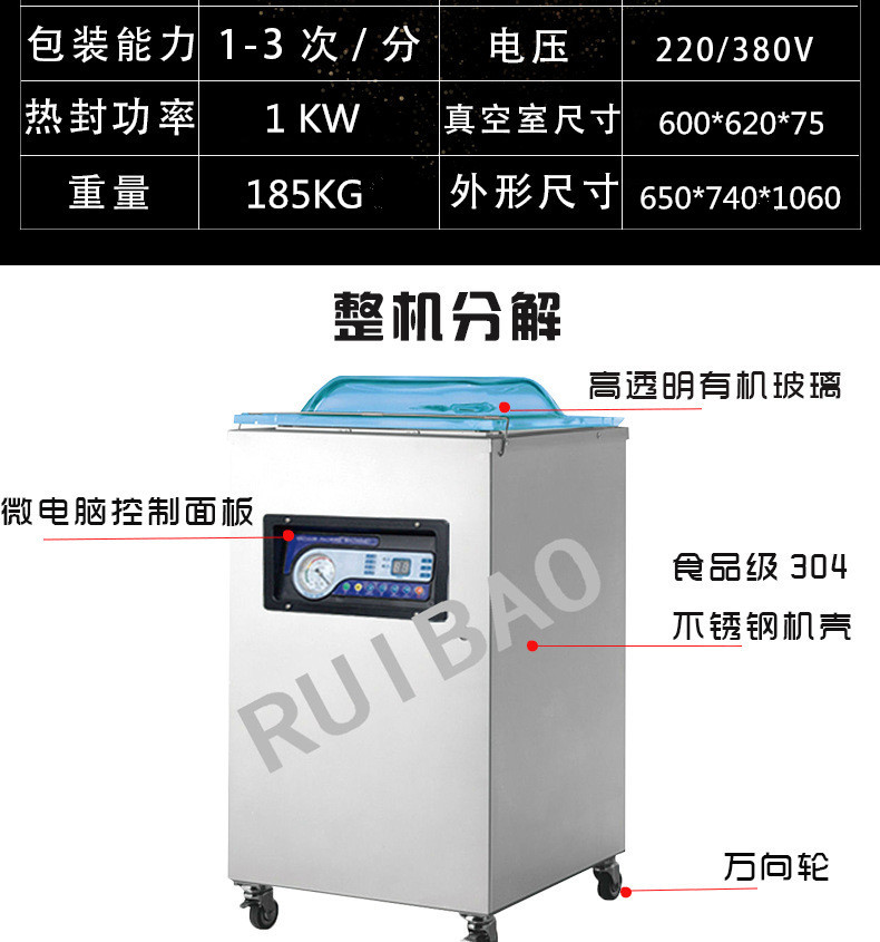 Ruibao 공급 단일 약실 600 진공 포장 기계 호두 너트 식품 원료 진공 질소 밀봉 기계스토어 가기