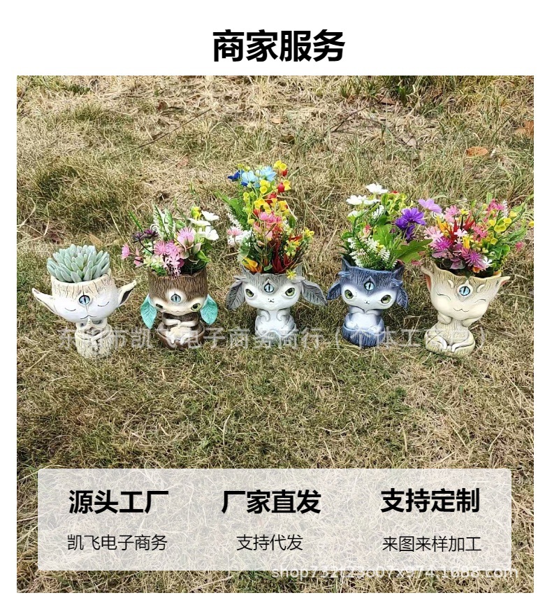 국경을 넘는 새로운 큰 눈 엘프 화분 목가적 인 장식 장식품 창조적 인 다육 화분 장식 장식품 제조 업체 도매스토어 가기
