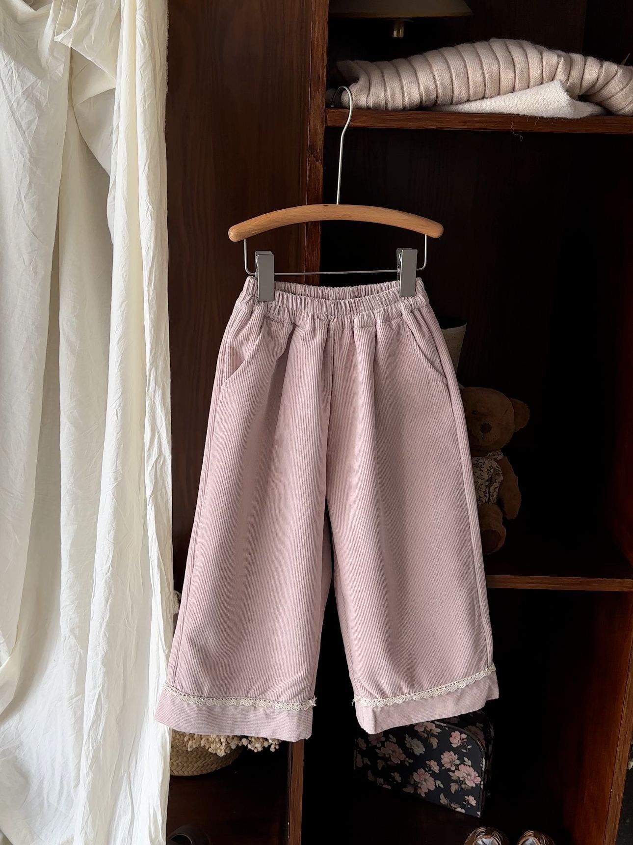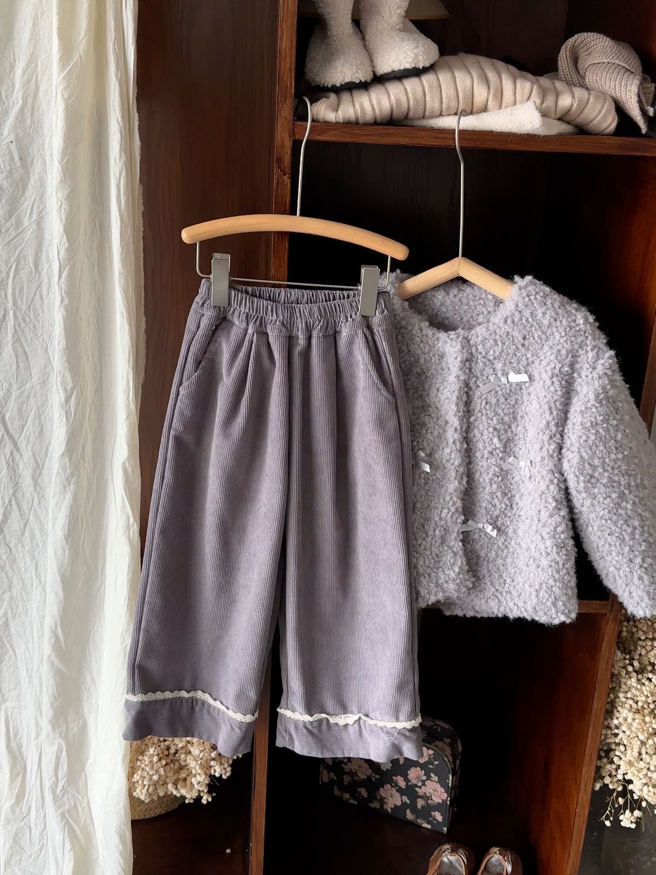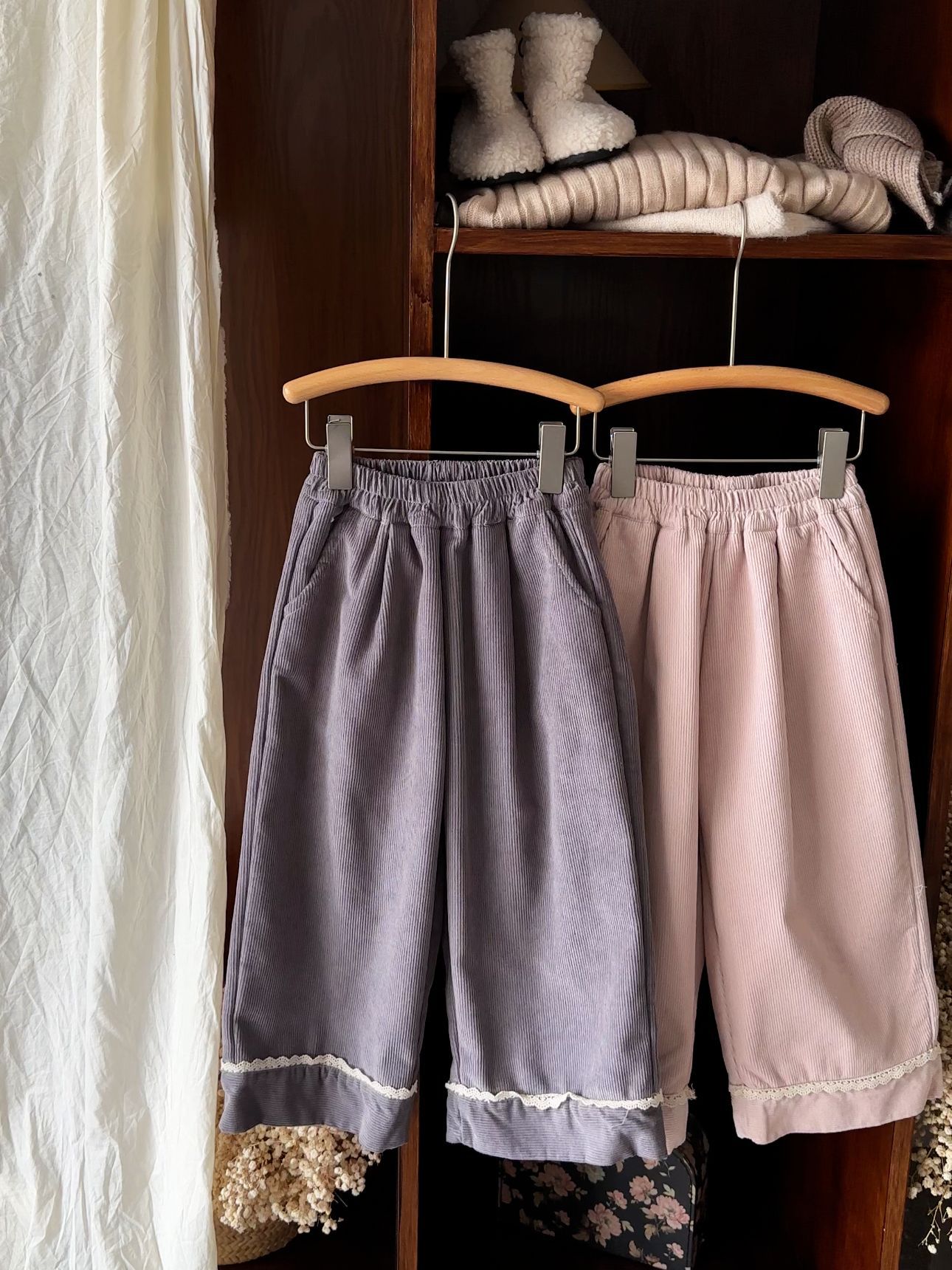 꽃과 2024 새로운 겨울 소녀 코듀로이 바지 큰 어린이 패션 기모 캐주얼 바지 조수의 한국판 발견