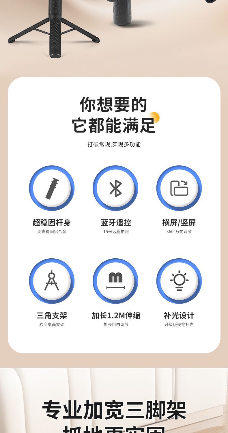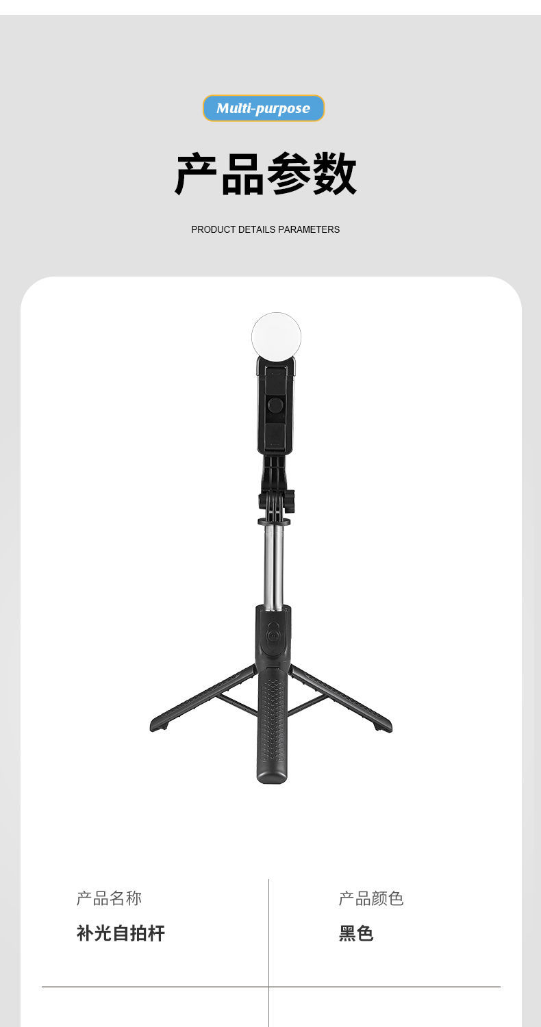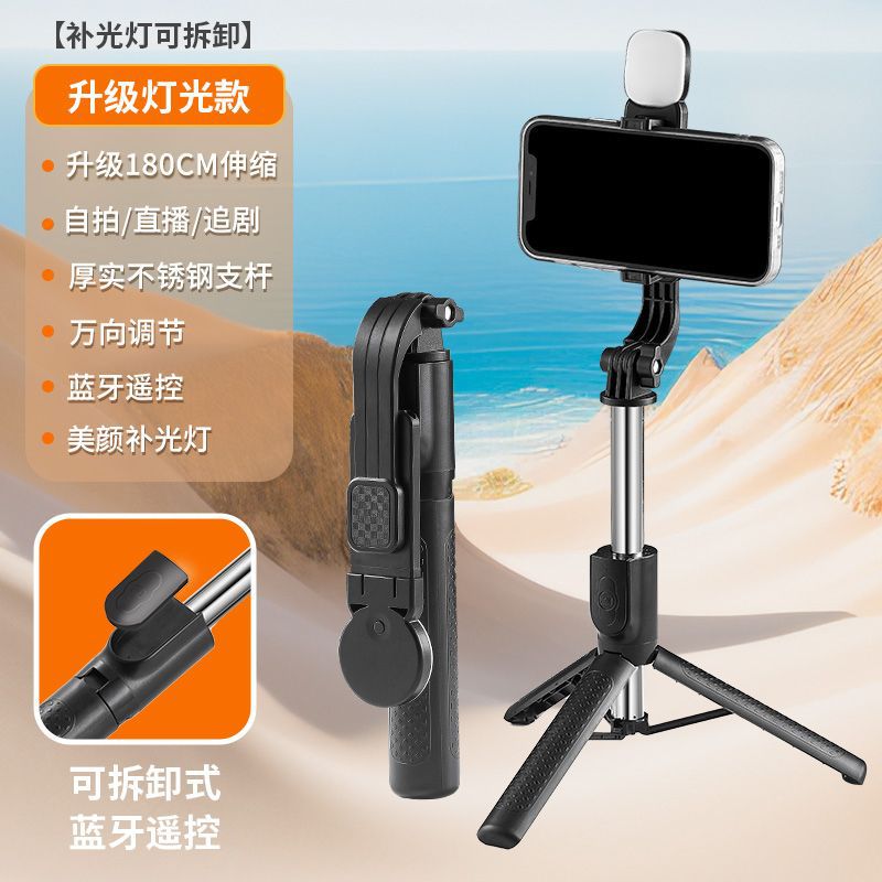 • 1.8m [플래그십 필 라이트 모델] 휴대용 흔들림 방지 + 블루투스 리모콘 스타 블랙 [일체형 접이식 + 용골 삼각대 안정적인 지지대]