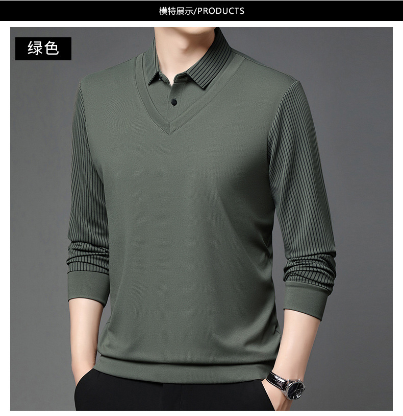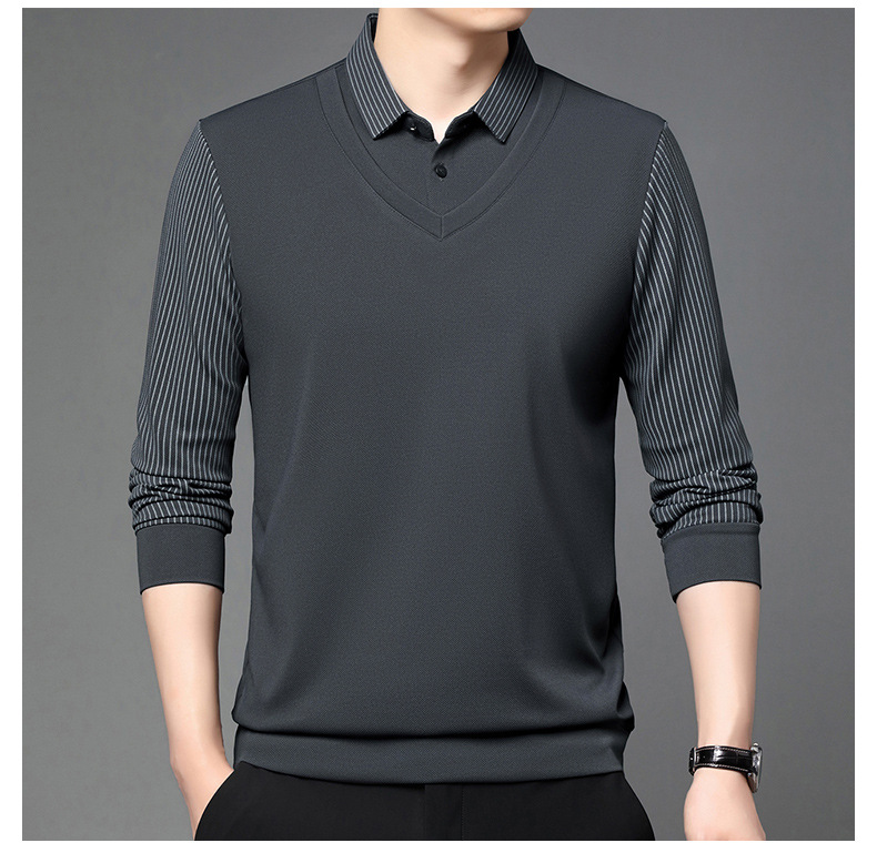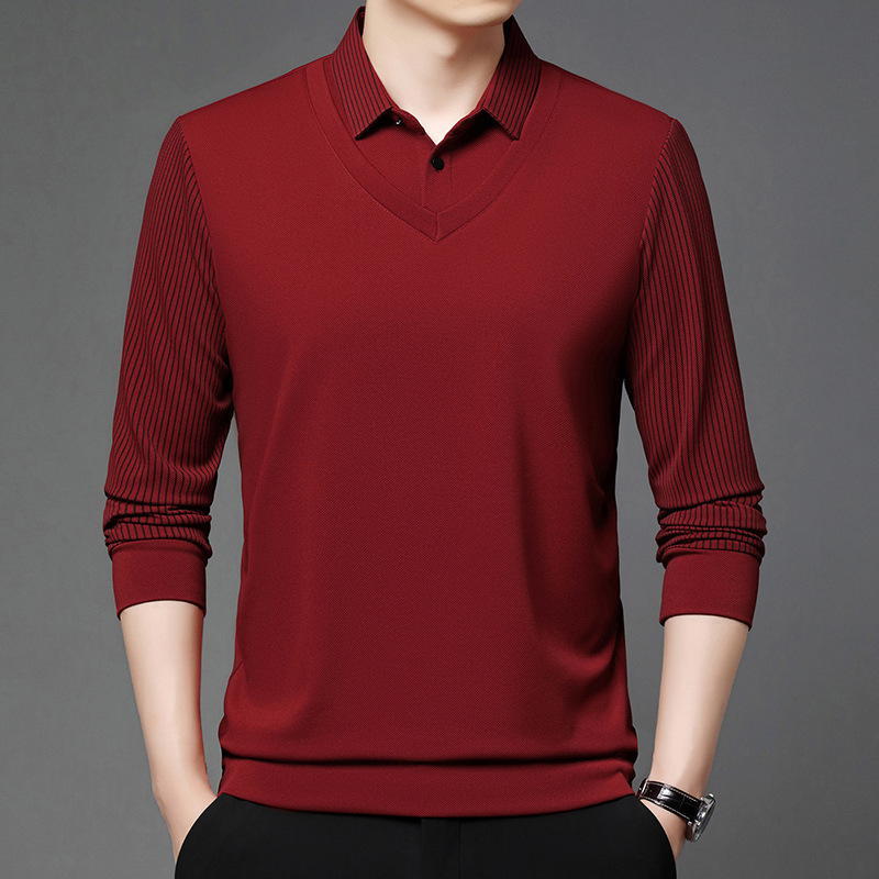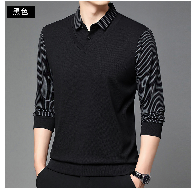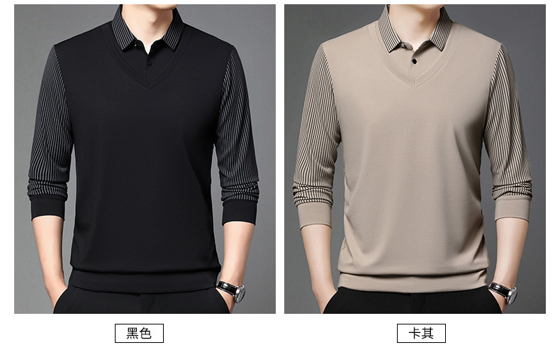 비즈니스 가짜 투피스 스웨터 남성 가을 및 겨울 새로운 캐주얼 따뜻한 긴팔 티셔츠 중년 및 노인을위한 폴로 셔츠베이스 셔츠