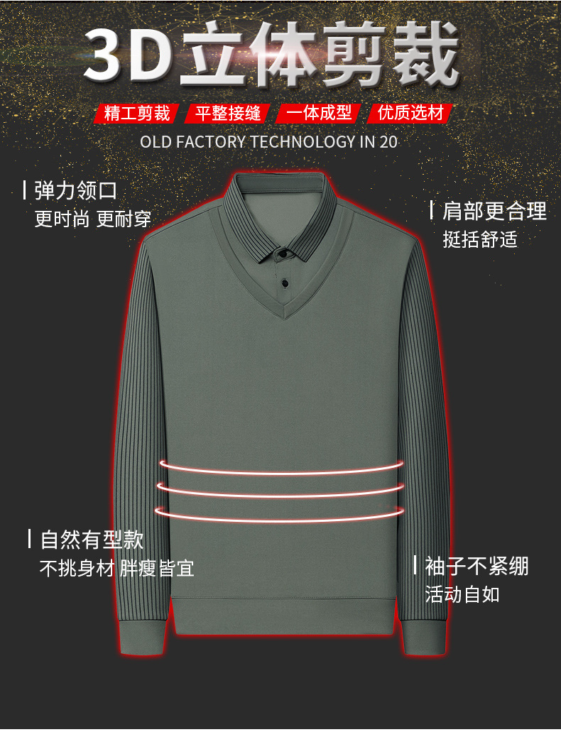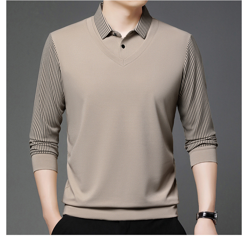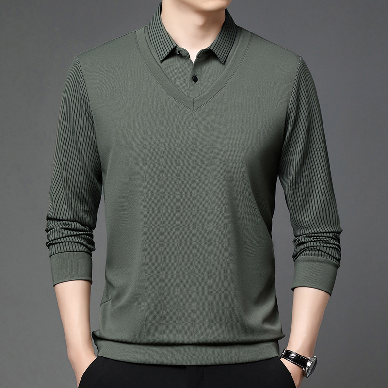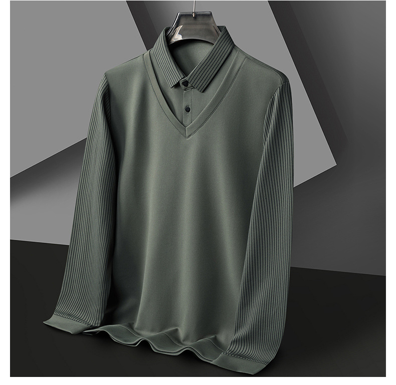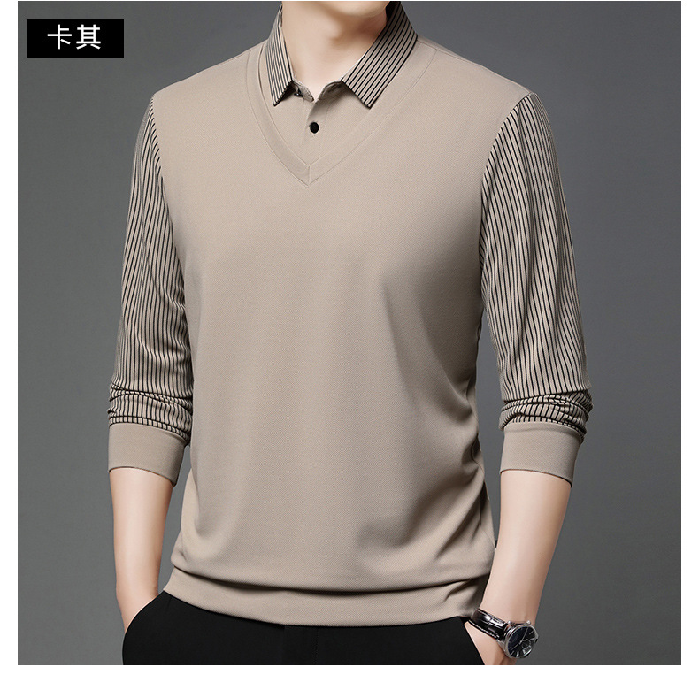 비즈니스 가짜 투피스 스웨터 남성 가을 및 겨울 새로운 캐주얼 따뜻한 긴팔 티셔츠 중년 및 노인을위한 폴로 셔츠베이스 셔츠