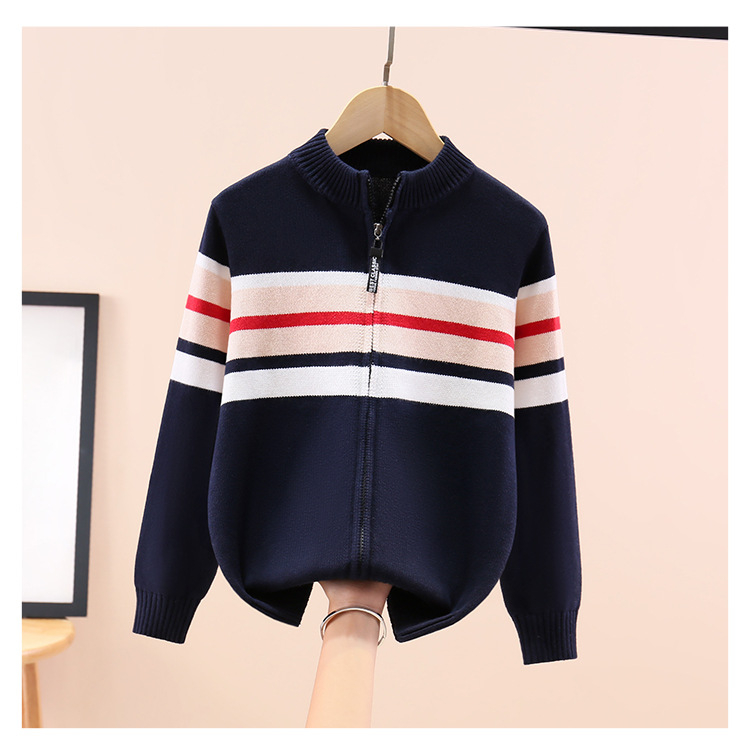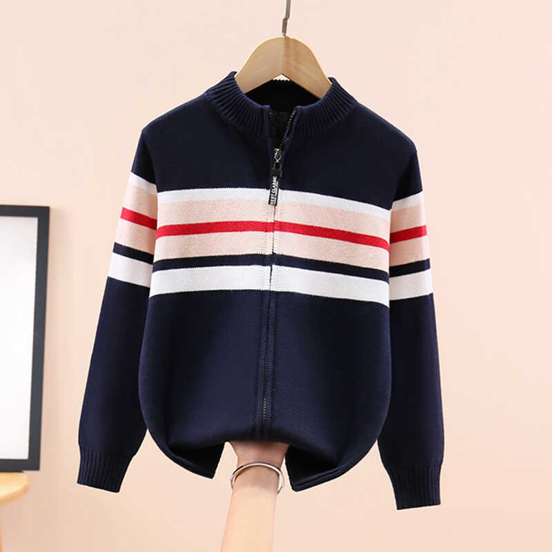 남아용 스웨터 재킷, 순면 가을 겨울 의류, 중대형 아동용 남아용 니트 가디건 스웨터, 벨벳 및 두꺼운 상의