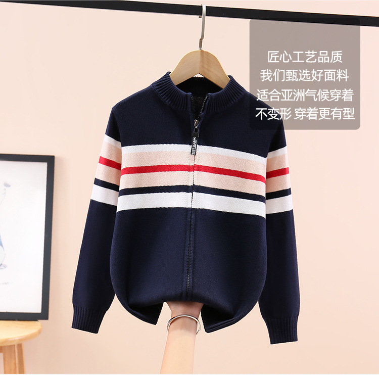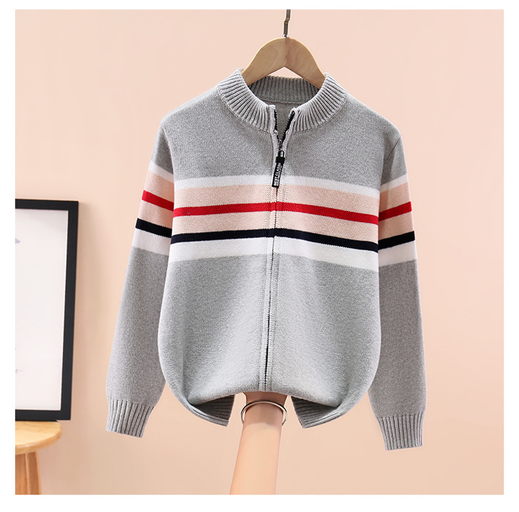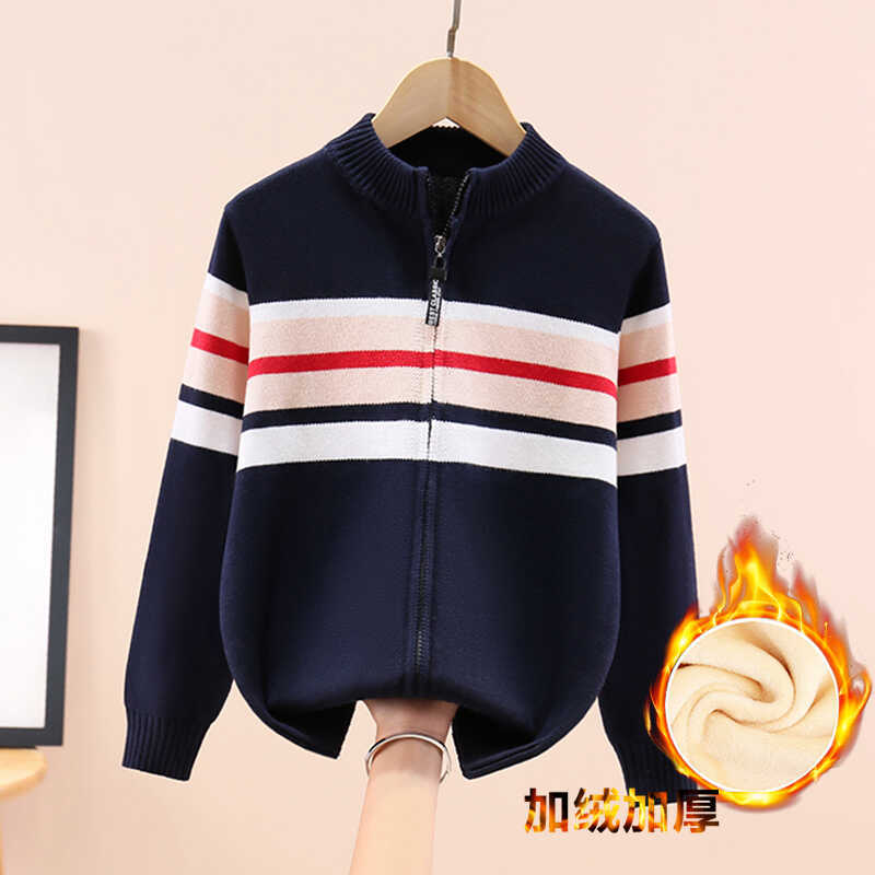 남아용 스웨터 재킷, 순면 가을 겨울 의류, 중대형 아동용 남아용 니트 가디건 스웨터, 벨벳 및 두꺼운 상의스토어 가기