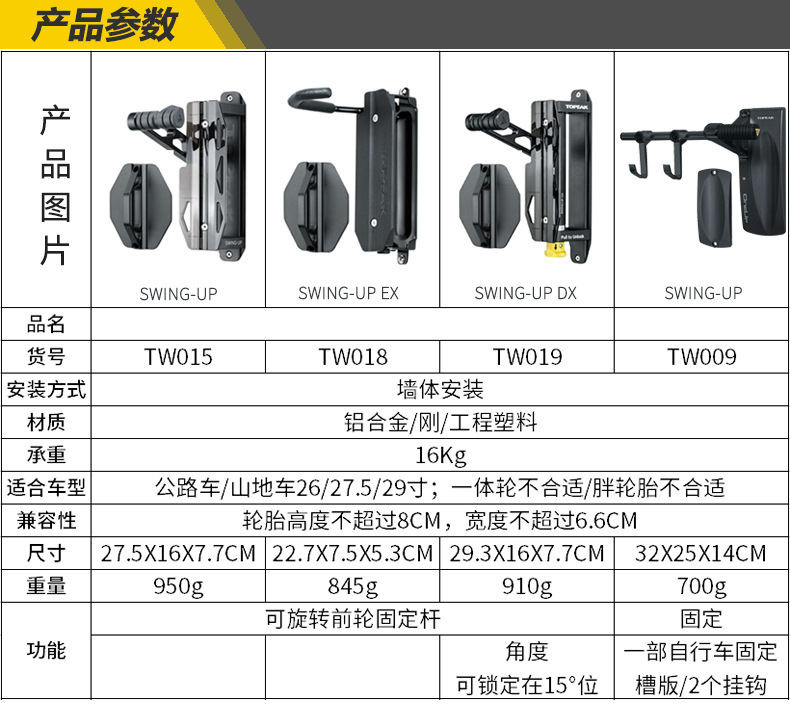 TOPEAK 자전거 벽 장착 주차 랙 산 고속도로 벽 장착 디스플레이 랙 자전거 벽 후크 벽 걸이스토어 가기